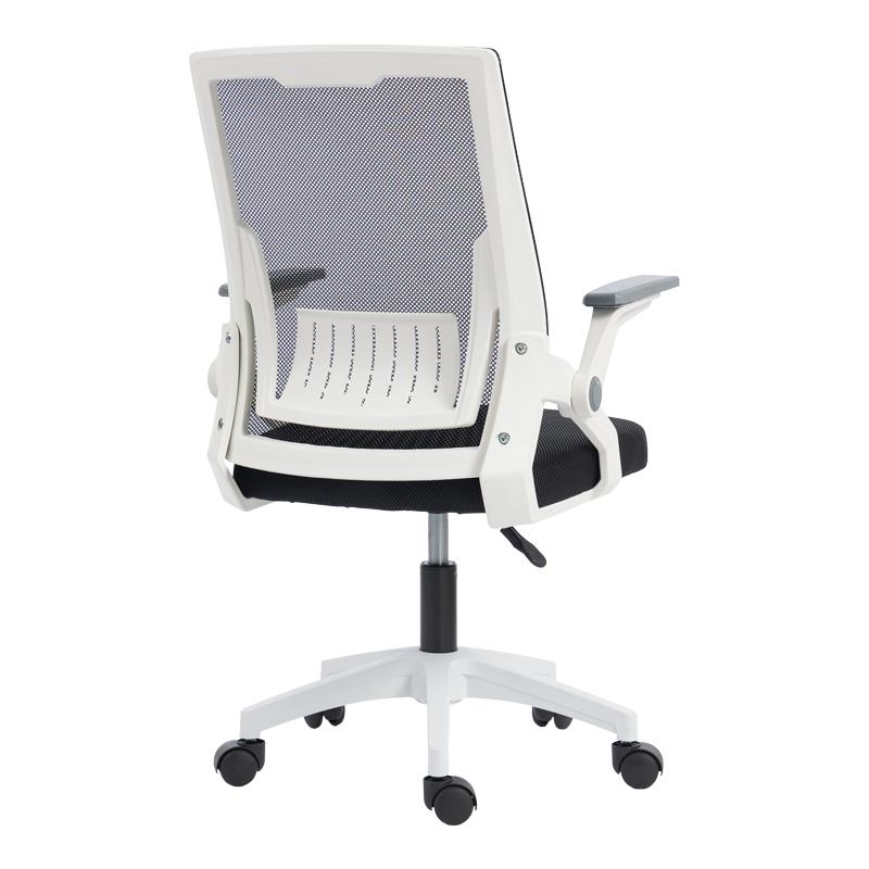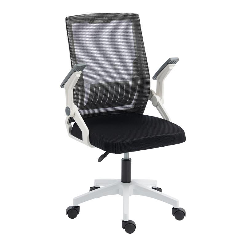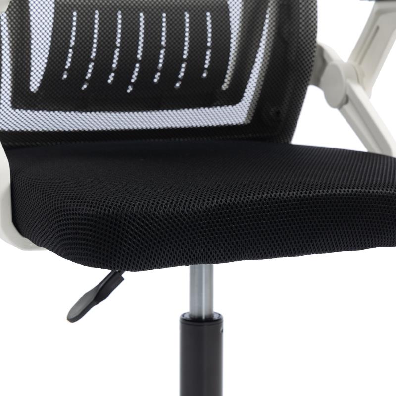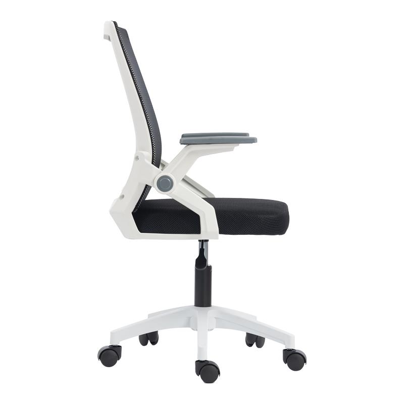 - Ευέλικτος Σχεδιασμός Εξοικονόμησης Χώρου: Τα υποβραχιόνια "Flip-Up" αναδιπλώνονται κατά 90°, επιτρέποντας την καρέκλα να σπρώχνεται πλήρως κάτω από οποιοδήποτε γραφείο. Αυτή η λειτουργία είναι ιδανική για compact γραφεία και γραφεία με περιορισμένο χώρο.