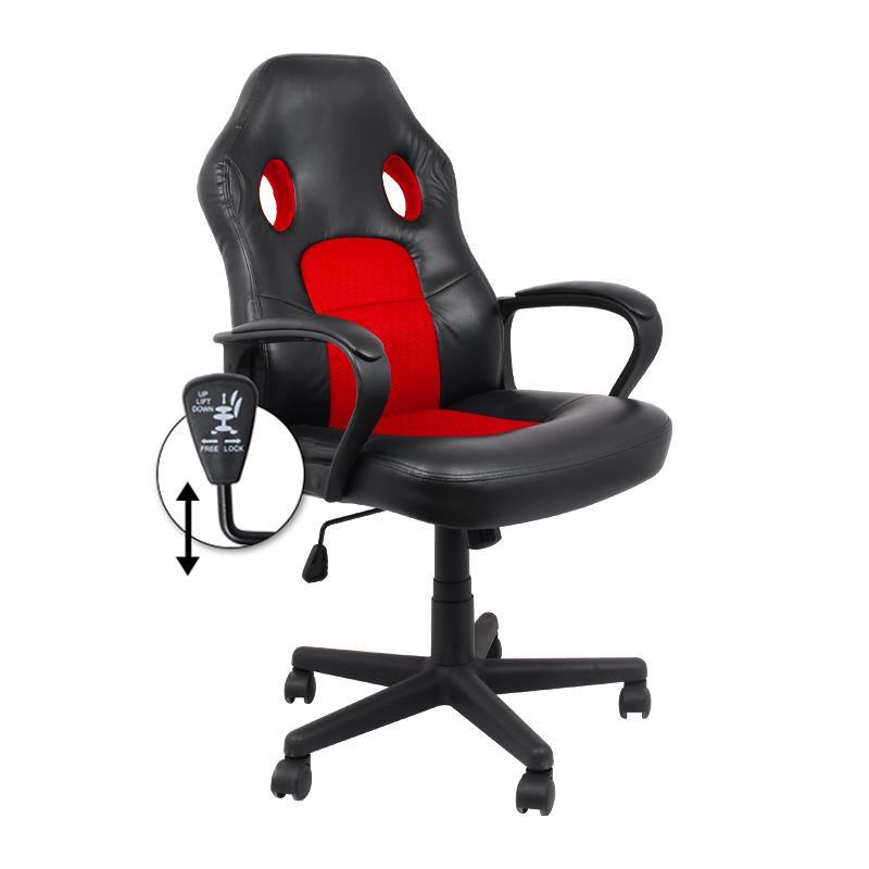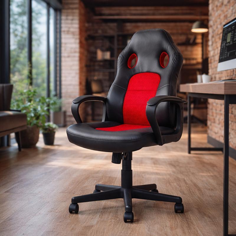 Η καρέκλα γραφείου 3003 αποτελεί την ιδανική επιλογή για όσους αναζητούν συνδυασμό εργονομίας και στυλ στο γραφείο τους. Σχεδιασμένη για να προσφέρει άνεση και στήριξη καθ’ όλη τη διάρκεια της εργασίας, αυτή η καρέκλα θα προλάβει την κούραση και την καταπόνηση του σώματος. Το μαύρο τεχνόδερμα σε συνδυασμό με το κόκκινο ύφασμα στην πλάτη και στο κάθισμα δημιουργούν έναν εντυπωσιακό και δυναμικό σχεδιασμό που ταιριάζει σε κάθε μοντέρνο εργασιακό περιβάλλον και οι τρύπες που υπάρχουν στην πλάτη επιτρέπουν την διέλευση του αέρα.
