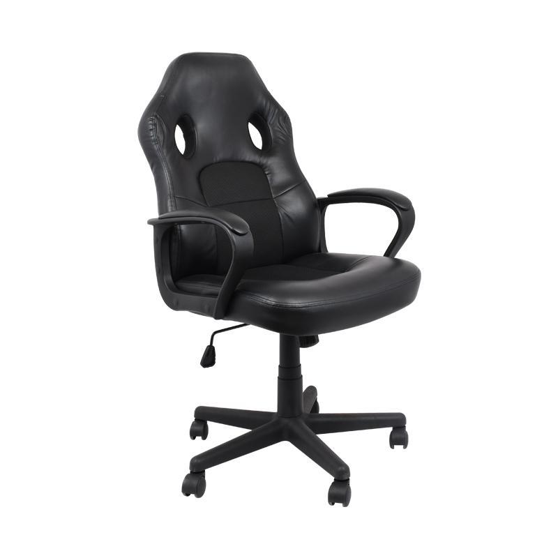 Η καρέκλα γραφείου 3003 αποτελεί την ιδανική επιλογή για όσους αναζητούν συνδυασμό εργονομίας και στυλ στο γραφείο τους. Σχεδιασμένη για να προσφέρει άνεση και στήριξη καθ’ όλη τη διάρκεια της εργασίας, αυτή η καρέκλα θα προλάβει την κούραση και την καταπόνηση του σώματος. Το μαύρο τεχνόδερμα σε συνδυασμό με το μαύρο ύφασμα στην πλάτη και στο κάθισμα δημιουργούν έναν εντυπωσιακό και δυναμικό σχεδιασμό που ταιριάζει σε κάθε μοντέρνο εργασιακό περιβάλλον και οι τρύπες που υπάρχουν στην πλάτη επιτρέπουν την διέλευση του αέρα.