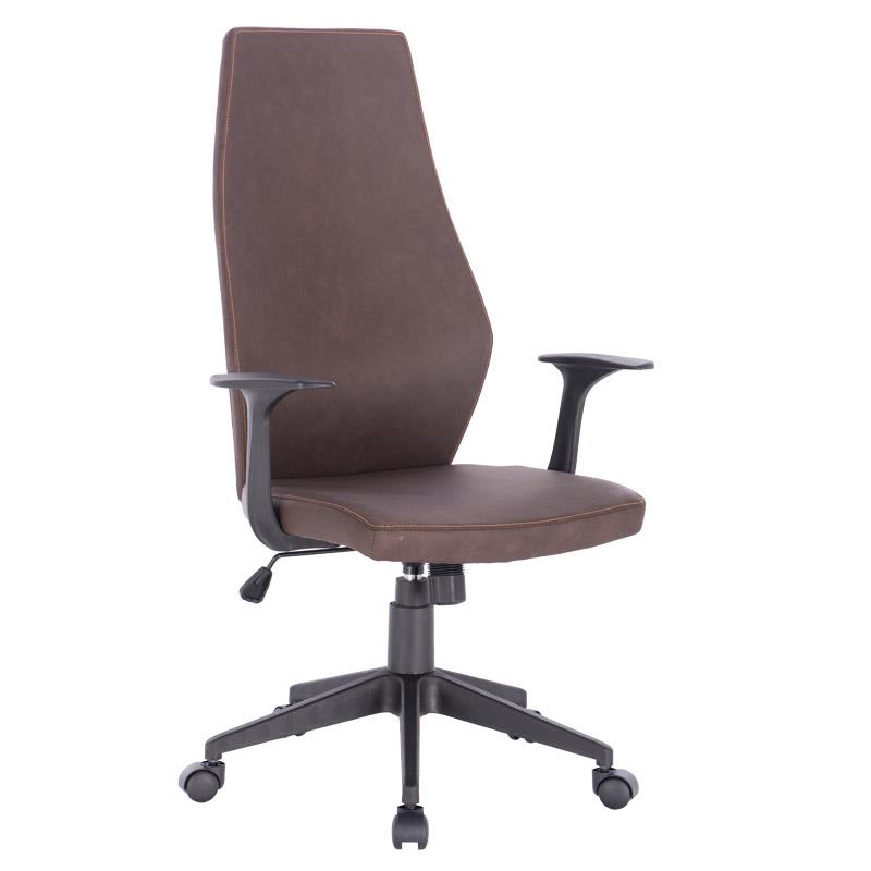 Το σκούρο καφέ χρώμα του καθίσματος σε συνδυασμό με τις πορτοκαλί ραφές δημιουργεί έναν δυναμικό και μοντέρνο συνδυασμό, ενώ ο μαύρος μεταλλικός σκελετός προσφέρει στιβαρότητα και κομψότητα.