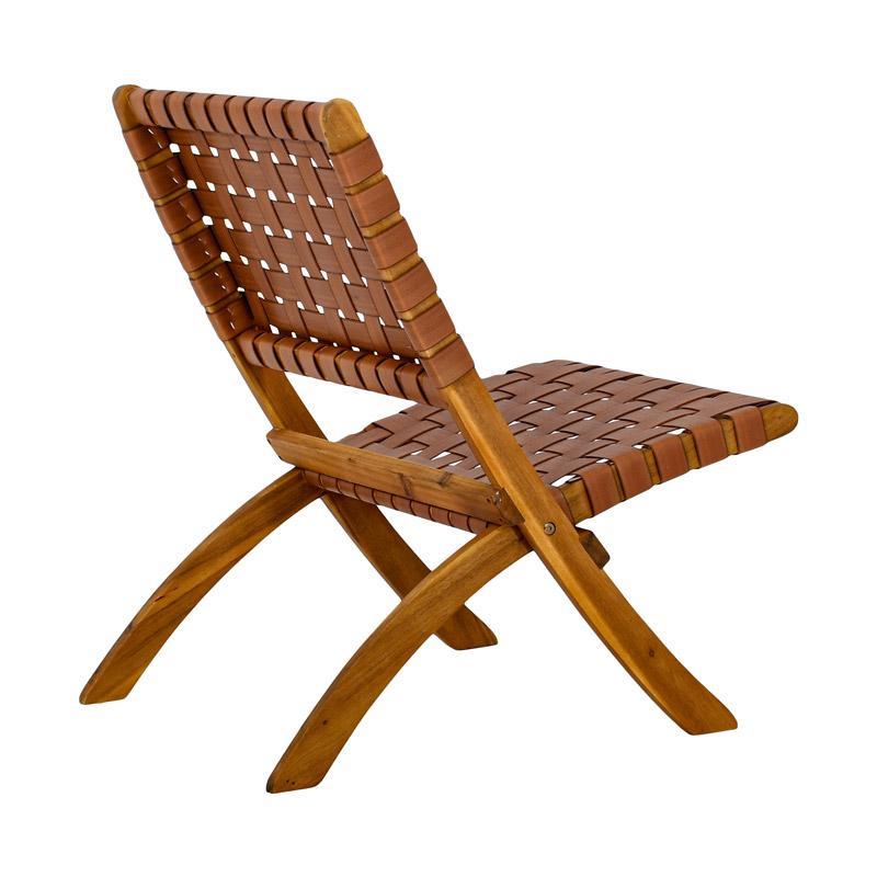 Καρέκλα Κήπου Solena Fylliana Φυσικό Ξύλο Ακακίας με Καφέ PU Ιμάντες 72x60x75εκ