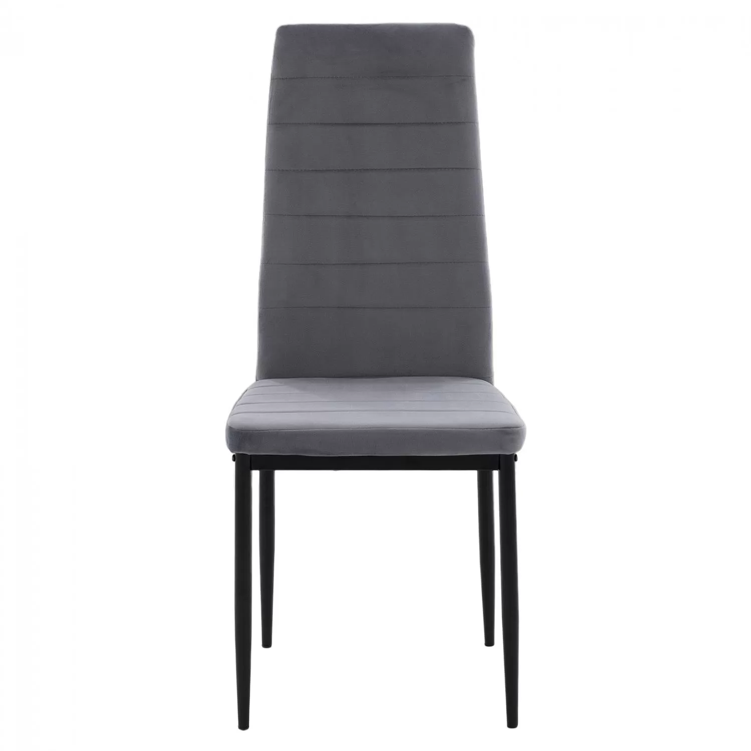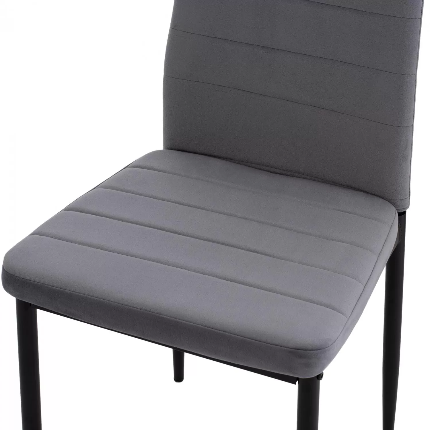 Καρέκλα κουζίνας από σκελετό μεταλλικό K/D σε μαύρη απόχρωση και επένδυση από βελούδινο ύφασμα σε χρώμα γκρι.
