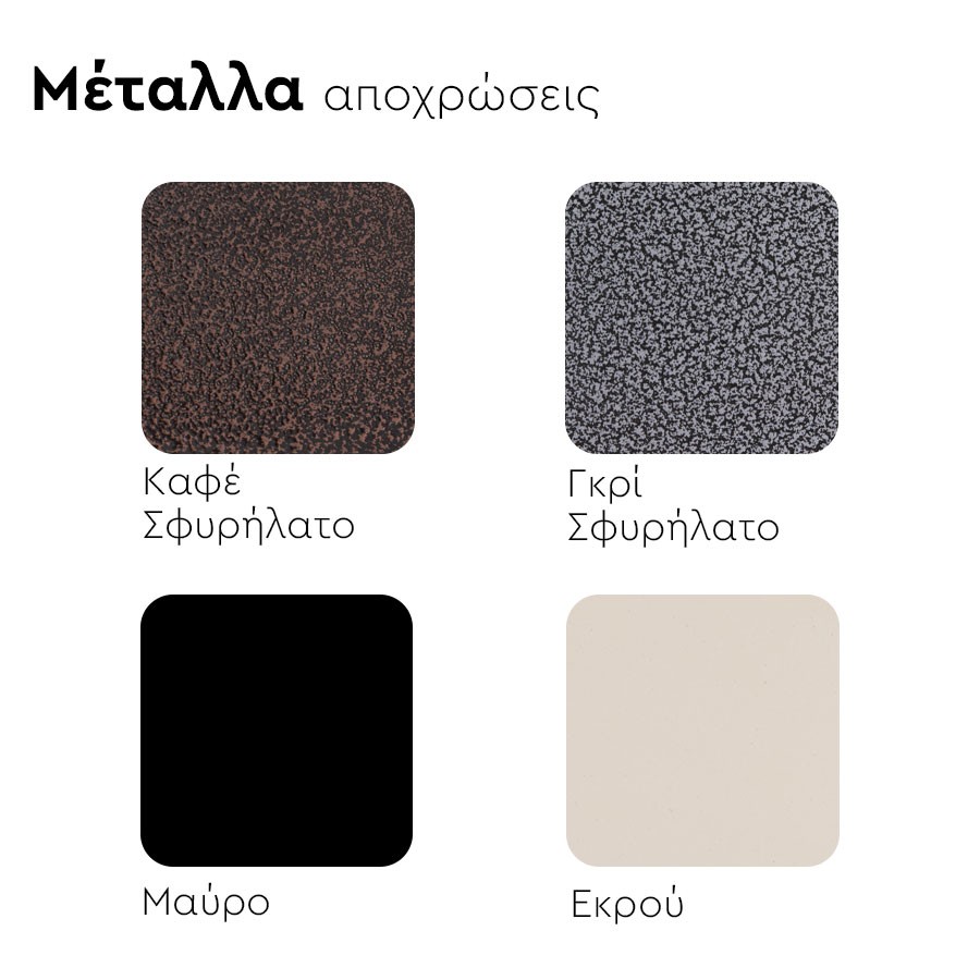 Διαθέσιμες επιλογές - 4 επιλογές απόχρωσης μετάλλου: Καφέ Σφυρήλατο, Γκρί Σφυρήλατο, Μαύρο, Εκρού