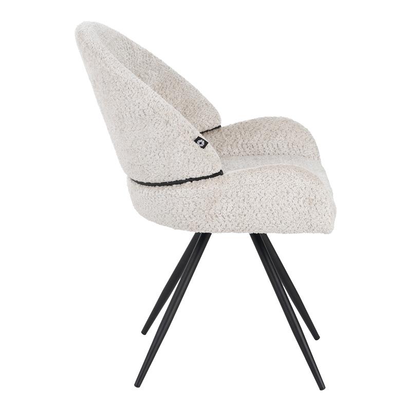 - Πλάτη και έδρα ενιαία, κατασκευασμένες από ενισχυμένο μεταλλικό σκελετό και επενδυμένες με μπουκλέ ύφασμα υψηλής ποιότητας και αντοχής