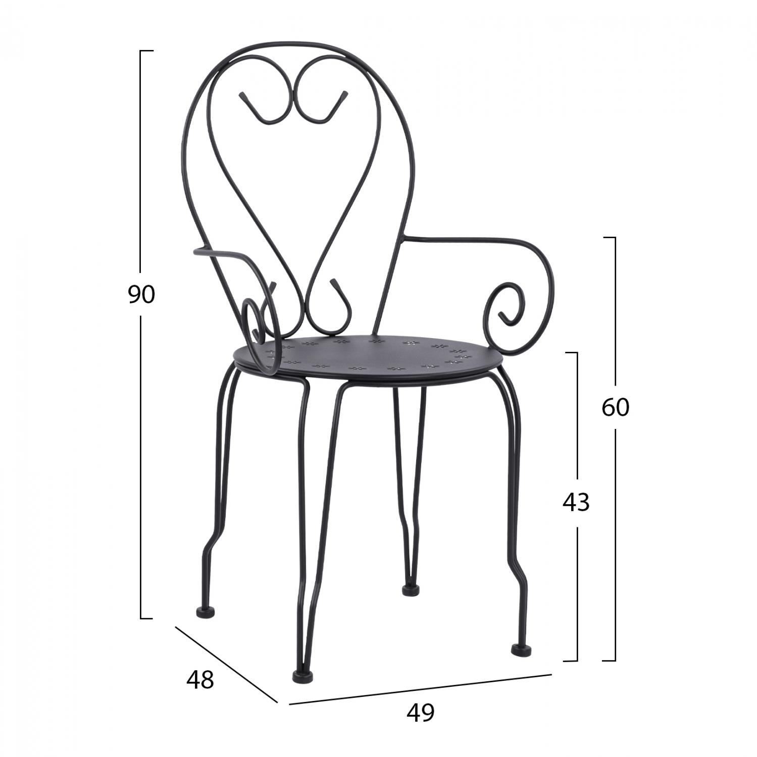 Καρέκλα AMORE συνδυασμός μοντέρνου και κλασικού στοιχείου, σε μια φινετσάτη μεταλλική καρέκλα με μπράτσα, ιδανική για τον κήπο αλλά και την βεράντα σας.