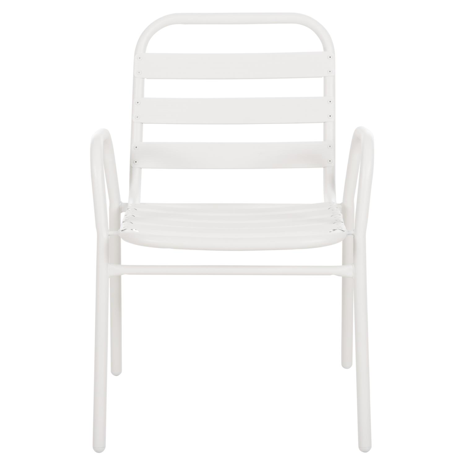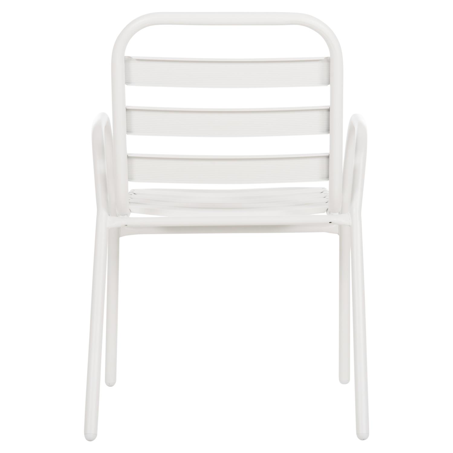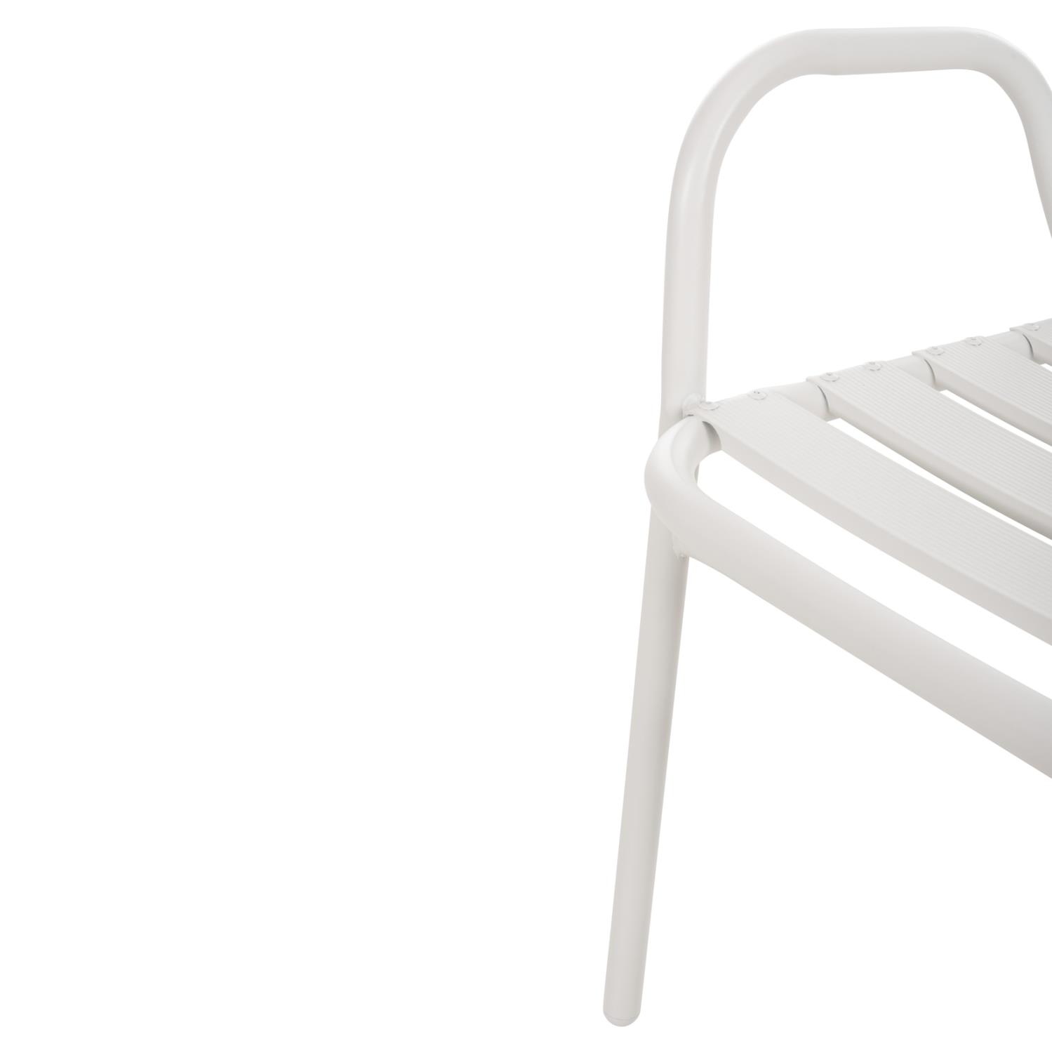 Η καρέκλα εξωτερικού χώρου PRELUDE είναι κατασκευασμένη από μέταλλο και αλουμίνιο σε ΛΕΥΚΟ χρώμα. Ο σκελετός της είναι μεταλλικός, ενώ η πλάτη και το κάθισμα αποτελούνται από «φέτες» αλουμινίου. Σχεδιαστικά, είναι λιτή με όμορφες καμπύλες και χαμηλά μπράτσα, ενώ το γεγονός ότι είναι ελαφριά και ΣΤΟΙΒΑΖΟΜΕΝΗ την κάνει ιδιαιτέρως πρακτική αφού μπορείτε να την αποθηκεύσετε εύκολα στον μικρότερο δυνατό χώρο.