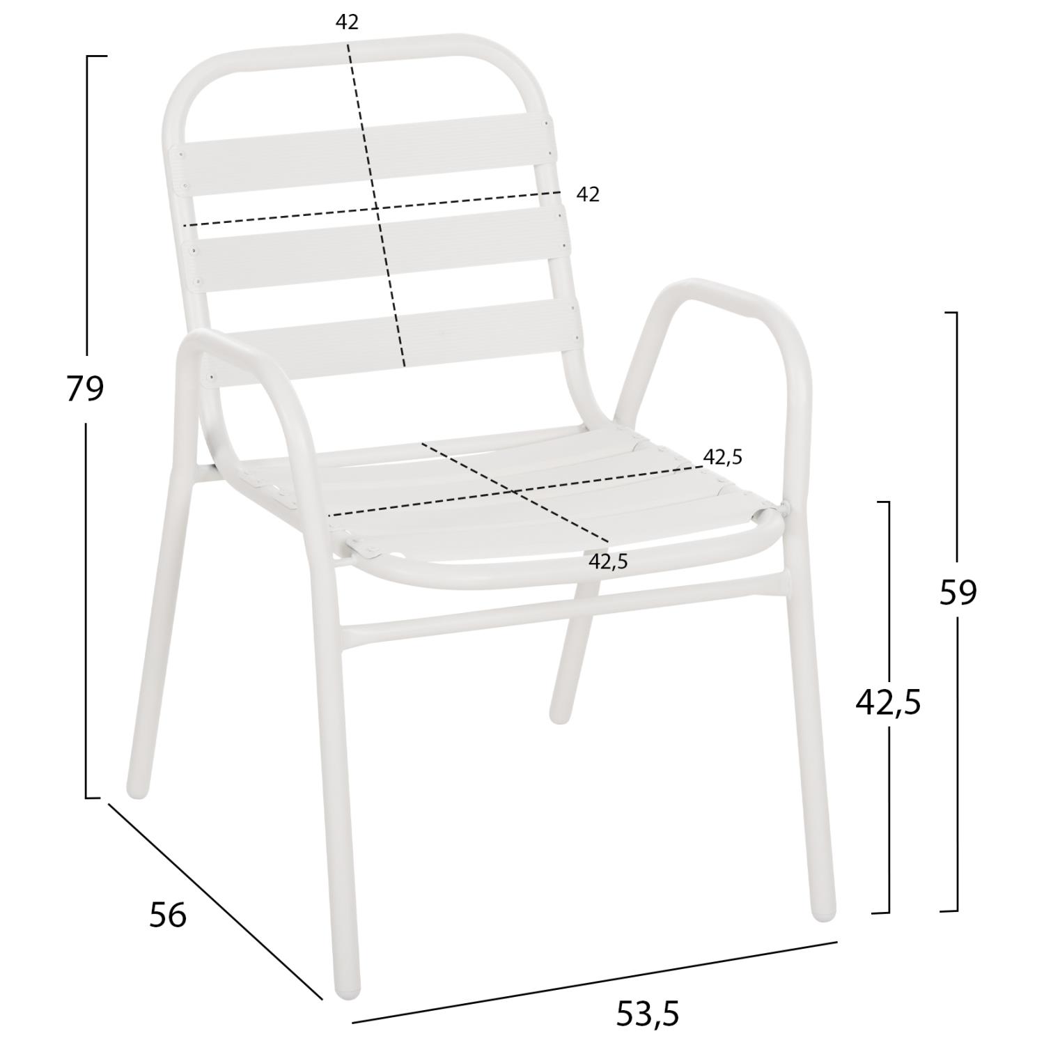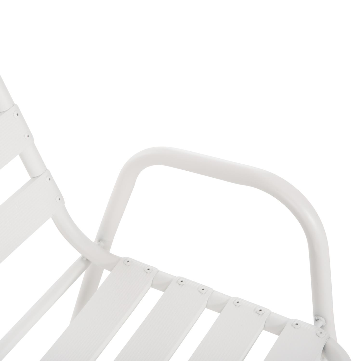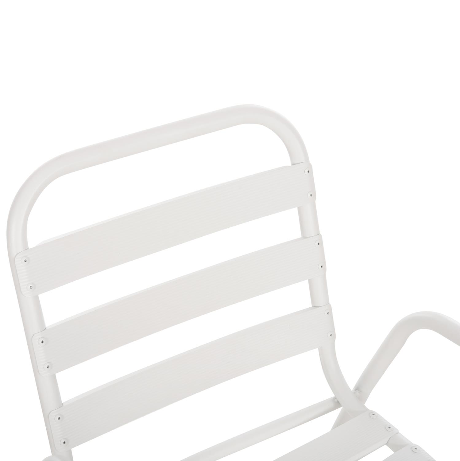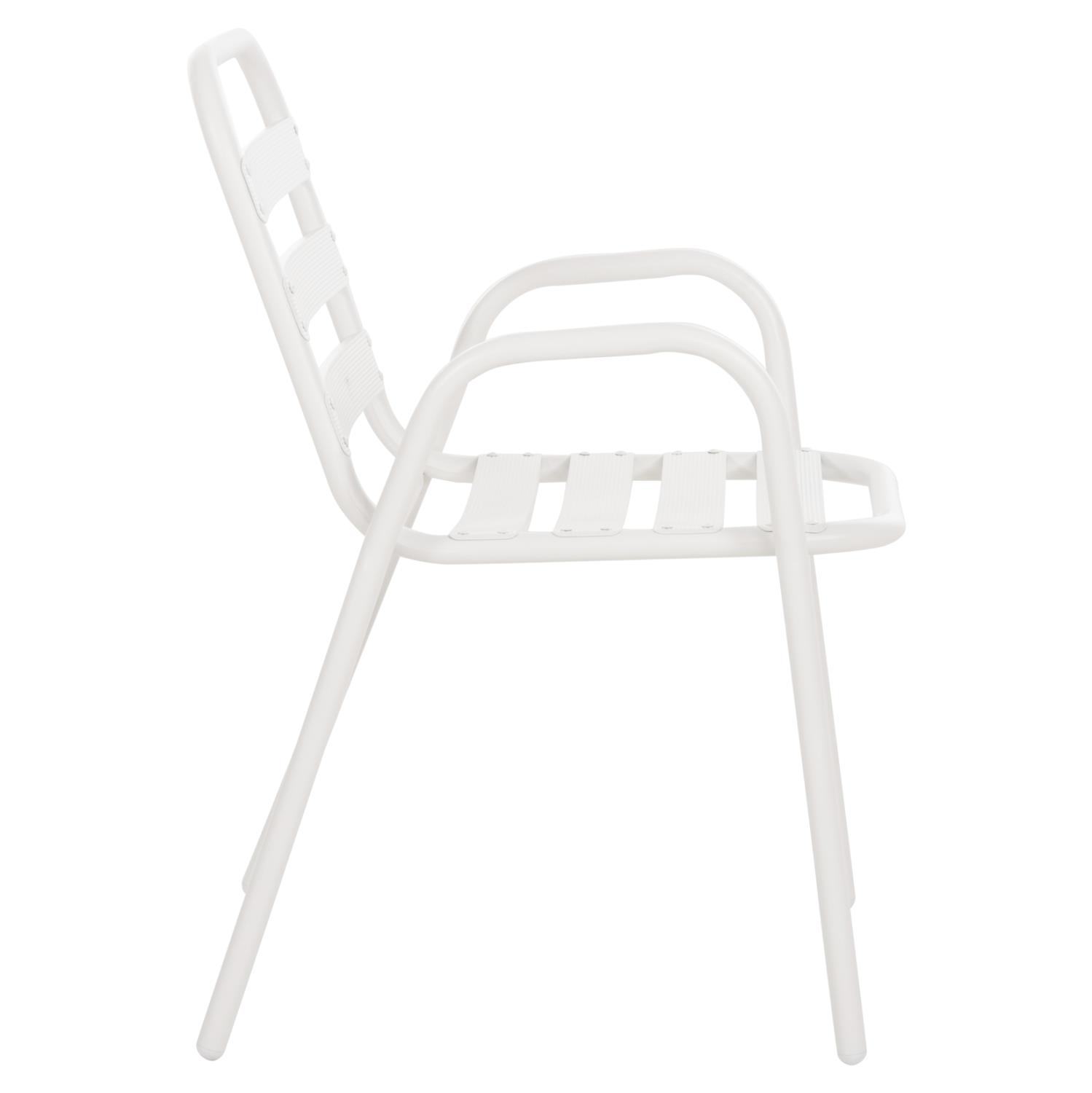 Η καρέκλα εξωτερικού χώρου PRELUDE είναι κατασκευασμένη από μέταλλο και αλουμίνιο σε ΛΕΥΚΟ χρώμα. Ο σκελετός της είναι μεταλλικός, ενώ η πλάτη και το κάθισμα αποτελούνται από «φέτες» αλουμινίου. Σχεδιαστικά, είναι λιτή με όμορφες καμπύλες και χαμηλά μπράτσα, ενώ το γεγονός ότι είναι ελαφριά και ΣΤΟΙΒΑΖΟΜΕΝΗ την κάνει ιδιαιτέρως πρακτική αφού μπορείτε να την αποθηκεύσετε εύκολα στον μικρότερο δυνατό χώρο.