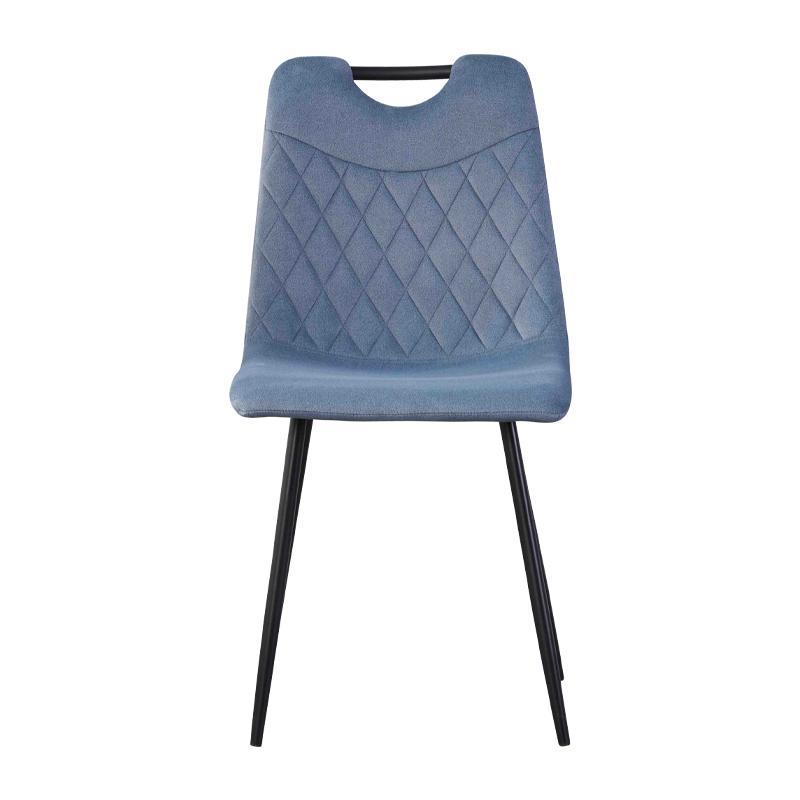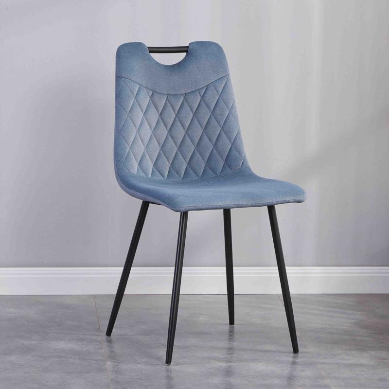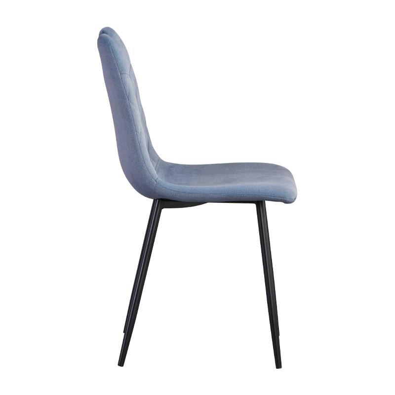 Η καρέκλα τραπεζαρίας 003 συνδυάζει την πρακτικότητα με την εκλεπτυσμένη αισθητική, αποτελώντας ιδανική επιλογή για κάθε σύγχρονο χώρο. Η μοντέρνα σχεδίασή της, σε συνδυασμό με τα ανθεκτικά υλικά και τις προσεγμένες διαστάσεις, προσφέρει μια άνετη και λειτουργική λύση για την τραπεζαρία, την κουζίνα ή οποιοδήποτε άλλο δωμάτιο στο σπίτι. Το μαλακό βελούδο του καθίσματος σε απόχρωση ράφ-μπλε αναδεικνύει έναν φρέσκο και κομψό χαρακτήρα, ενώ τα μαύρα μεταλλικά πόδια προσφέρουν ανθεκτικότητα και σταθερότητα, διατηρώντας ταυτόχρονα μια ελαφριά και μοντέρνα εμφάνιση.