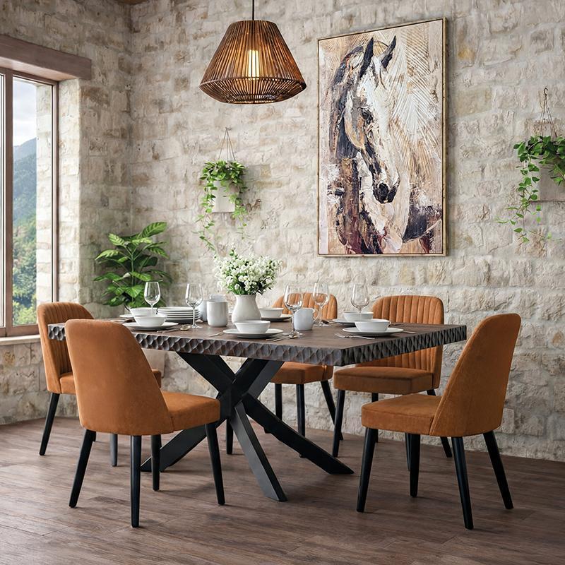 Η καρέκλα Adeline συνδυάζει τον κλασικό σχεδιασμό με τη μοντέρνα εργονομία, δημιουργώντας ένα άνετο και κομψό κομμάτι για την τραπεζαρία σας. Το κάθισμα με αφρώδη επένδυση προσφέρει εξαιρετική άνεση για μεγάλες συνεστιάσεις ή καθημερινά γεύματα, ενώ η επιλεγμένη επένδυση υφάσματος σε Terracotta απόχρωση προσδίδει μια διακριτική κομψότητα που ταιριάζει σε κάθε είδους διακόσμηση.