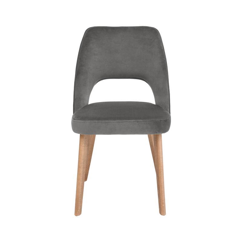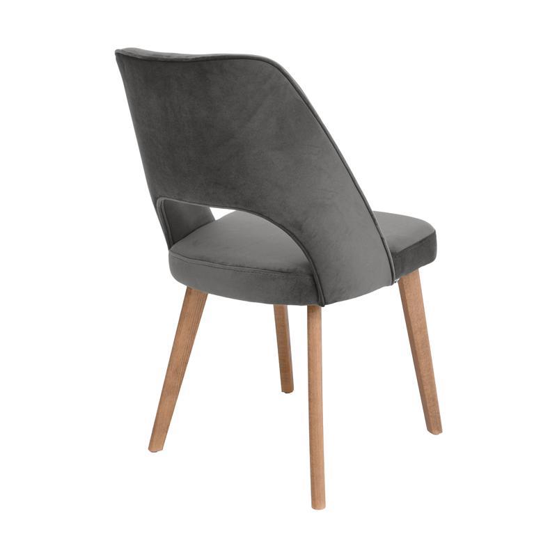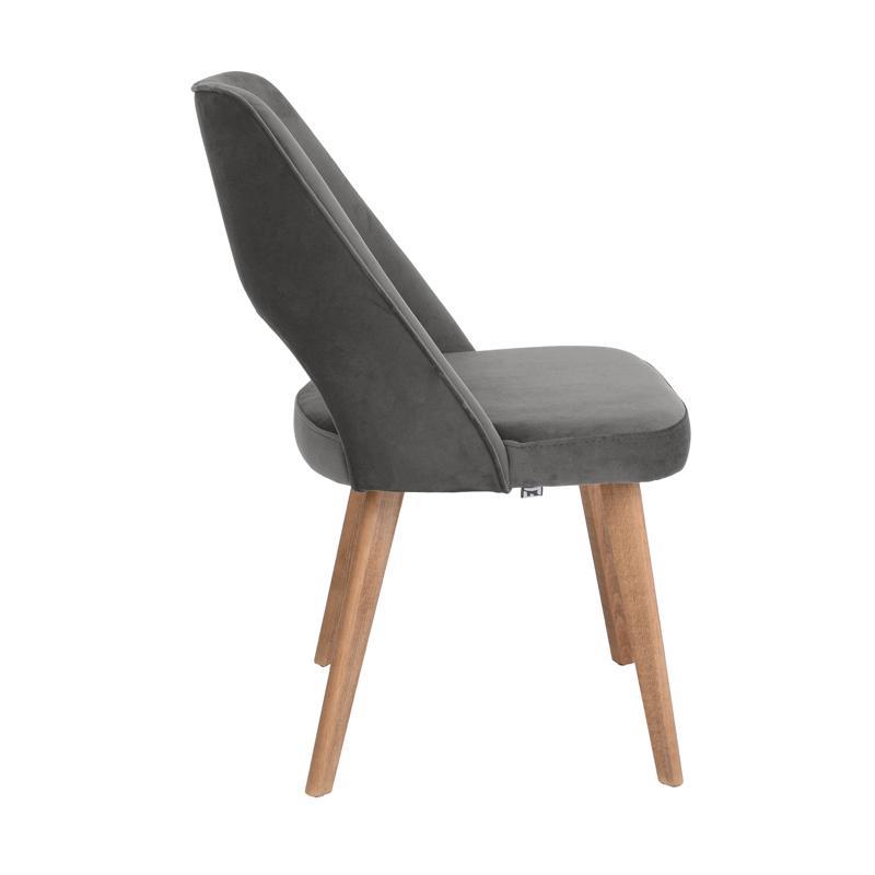 Η καρέκλα τραπεζαρίας Τ-5 LUX με ύφασμα σε απόχρωση ανθρακί και ξύλινα πόδια σε φυσικό χρώμα προσφέρει κομψότητα, άνεση και διαχρονική αισθητική σε κάθε τραπεζαρία ή καθιστικό.