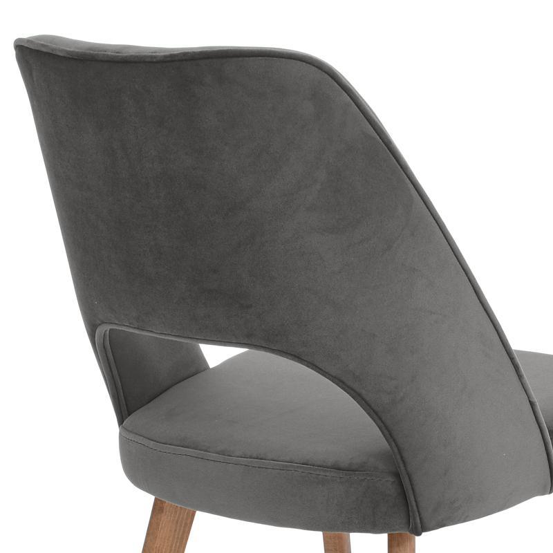 Η πλάτη της καρέκλας είναι εργονομικά σχεδιασμένη, προσφέροντας σωστή στήριξη και άνεση για πολύωρη χρήση, ενώ τα ξύλινα πόδια της απο μασίφ ξύλο οξιάς, σε φυσική απόχρωση, προσδίδουν σταθερότητα και ζεστασιά.