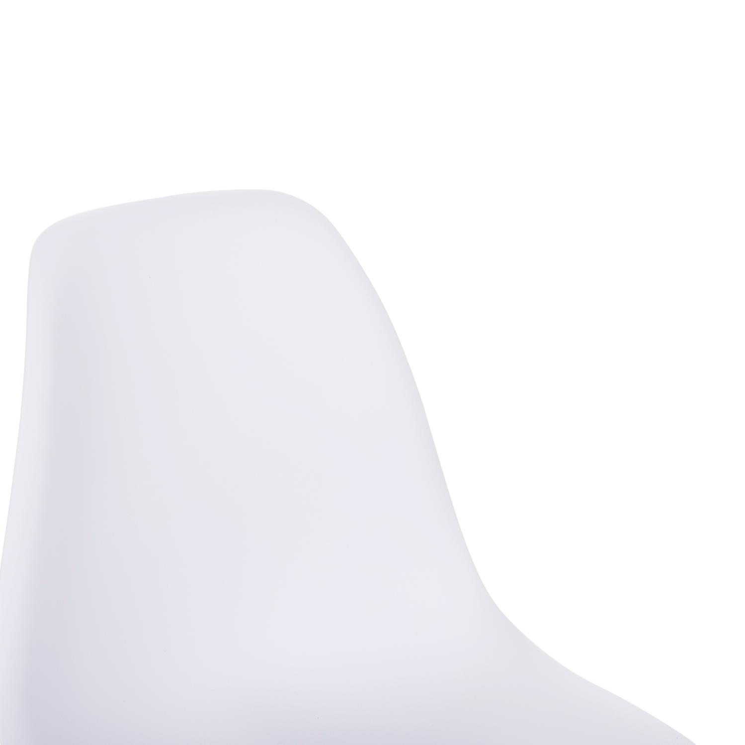 και το μαύρο μεταλλικό πλαίσιο συμπληρώνουν και στηρίζουν ένα κάθισμα από πολυπροπυλένιο σε λευκό χρώμα.