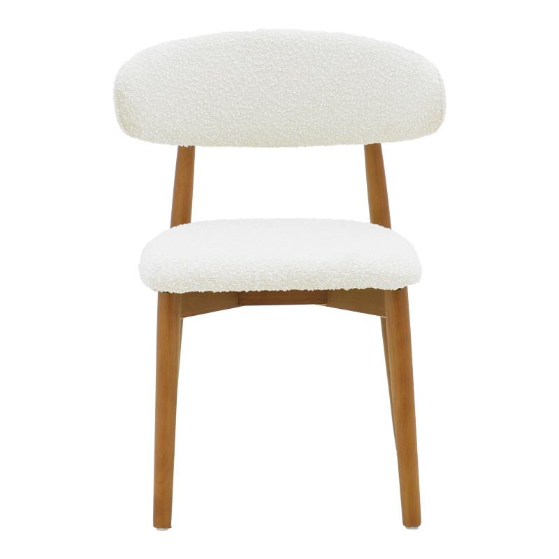 Καρέκλα Τραπεζαρίας Ubene Rubberwood Kαρυδί – Mπουκλέ Ύφασμα Λευκό 51x56x79εκ.