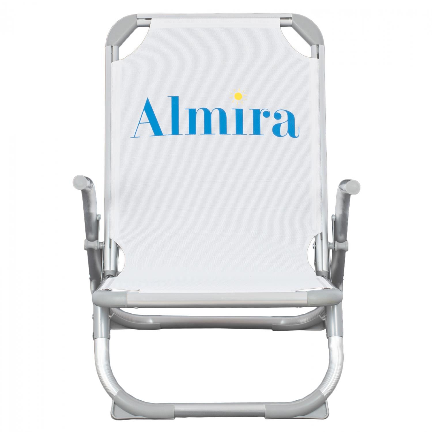Καρεκλάκι παραλίας ALMIRA ΒΑΡΕΩΣ ΤΥΠΟΥ από αλουμίνιο με ψηλή πλάτη σε λευκή απόχρωση.