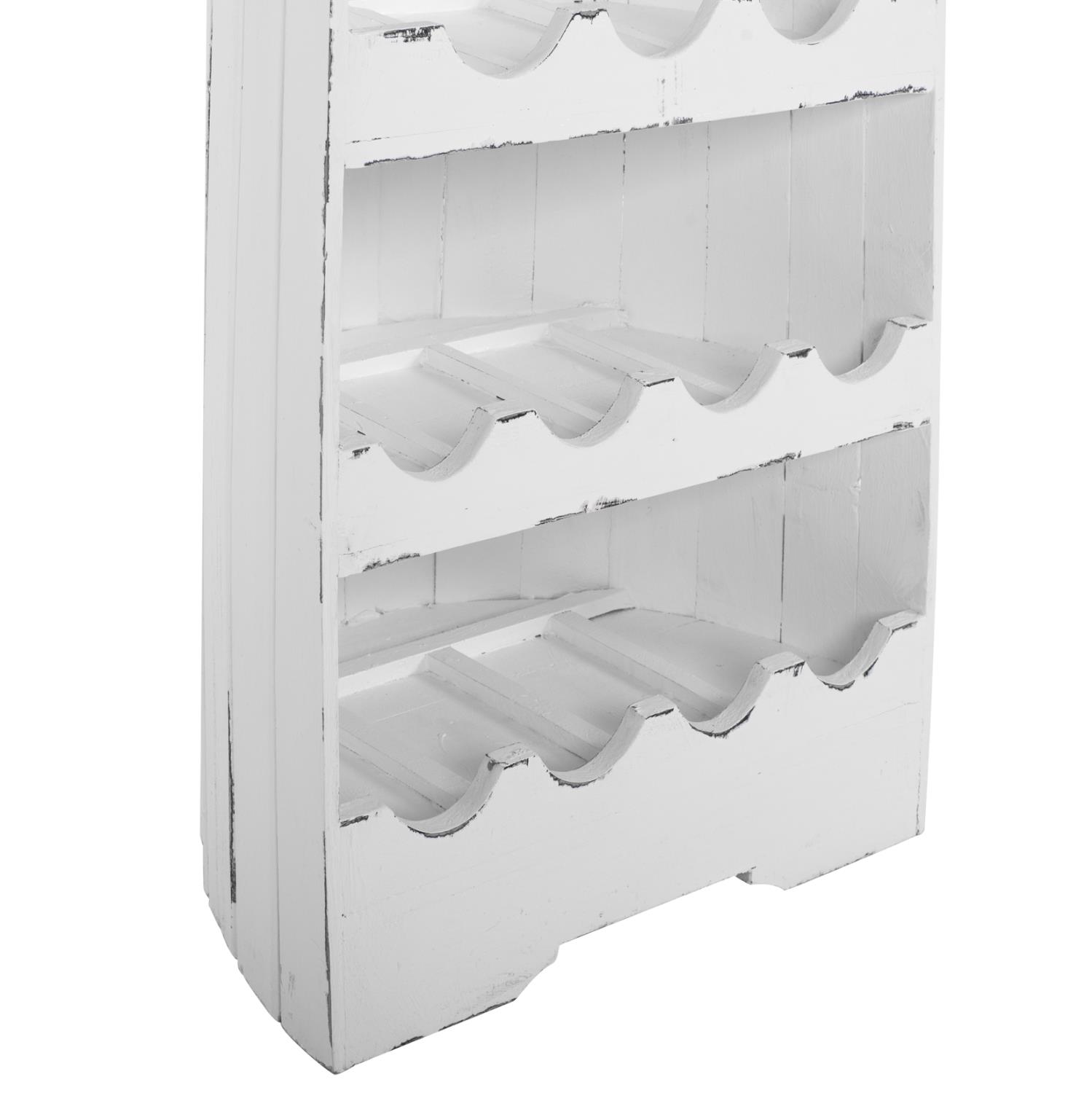 Η ξύλινη κάβα μπουκαλιών ΗΜ9495 σε λευκό αντίκ χρώμα, είναι χρησιμότατη για κάθε χώρο. Είναι κατασκευασμένη σε σχήμα βάρκας κάθετα στερεωμένης, με λαξευμένες αριστοτεχνικά 5 σειρές για τοποθέτηση 17 μπουκαλιών. Πρόκειται για μια πανέμορφη κατασκευή που αποτελεί τόσο κομμάτι διακόσμησης, όσο και πρακτικό αντικείμενο οργάνωσης και αποθήκευσης μπουκαλιών.