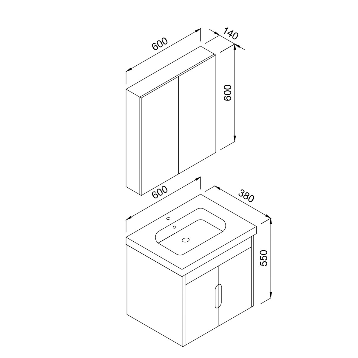 Περιλαμβάνει πρόσοψη καθρέπτη με δύο πόρτες. Διαθέτει εσωτερικό ράφι για να οργανώνεται καλύτερα η αποθήκευση χρηστικών αντικειμένων.