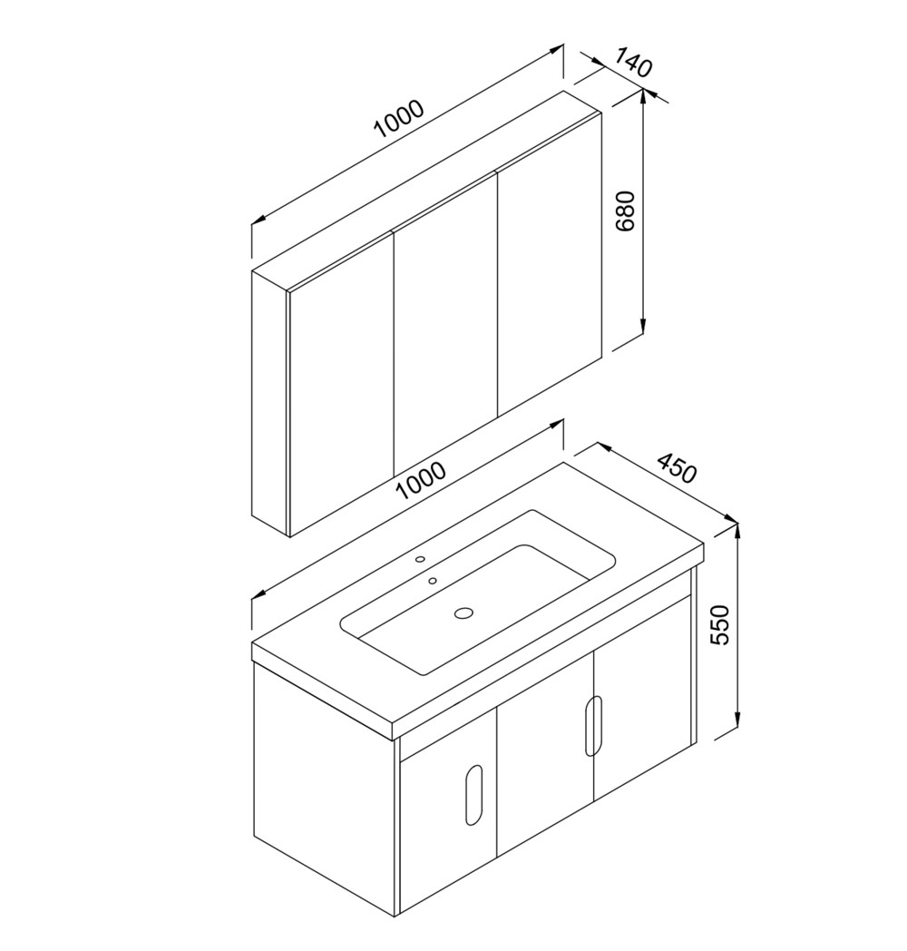 Περιλαμβάνει πρόσοψη καθρέπτη με τρεις πόρτες. Διαθέτει εσωτερικό ράφι για να οργανώνεται καλύτερα η αποθήκευση χρηστικών αντικειμένων.