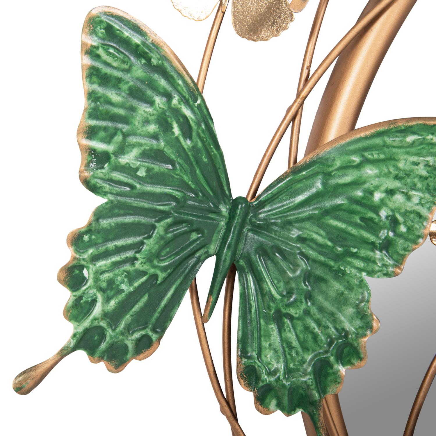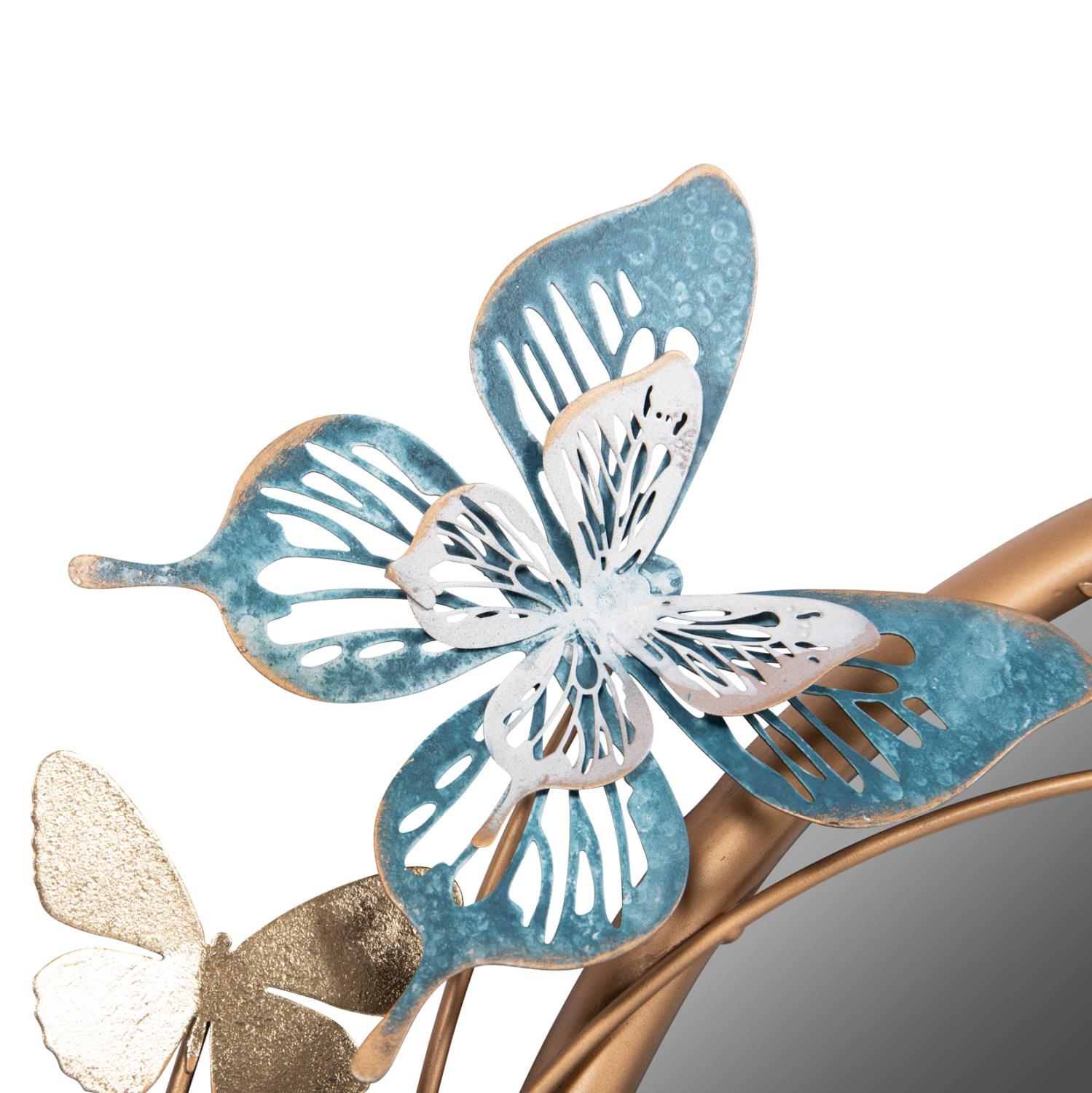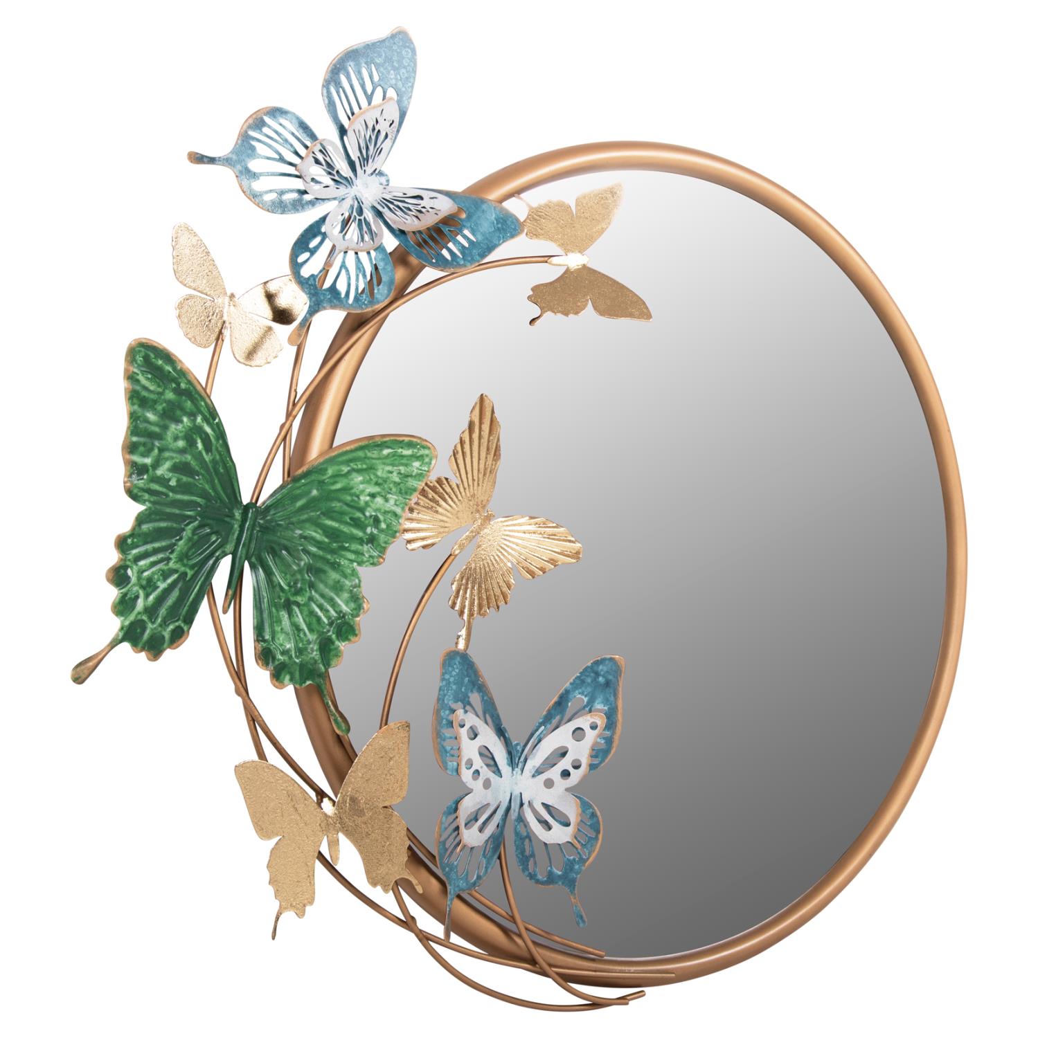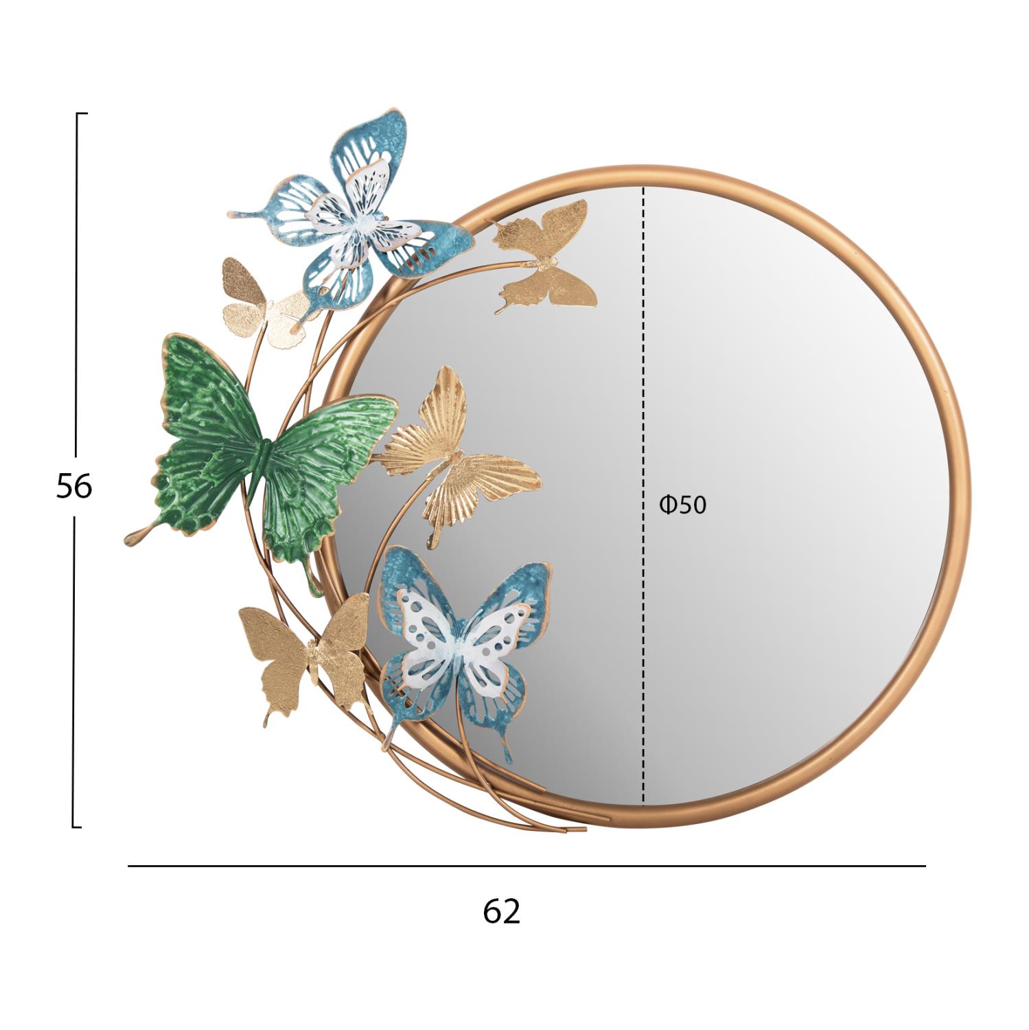 O καθρέπτης αυτός είναι πραγματικά ένα όμορφο κομμάτι στην διακόσμηση του σπιτιού σας! Πρόκειται για έναν στρογγυλό μεταλλικό καθρέπτη με ΧΡΥΣΟ πλαίσιο και φιγούρες πεταλούδων σε χρυσό, πράσινο, και μπλέ, πράγμα που τον καθιστά και διακοσμητικό τοίχου. Γενικά, ο καθρέπτης είναι ένα από τα αναγκαία αντικείμενα για ένα σπίτι, αλλά είναι ιδανικός και για ξενοδοχεία, Airbnb, ή χώρους εστίασης ως διακοσμητικό στοιχείο!