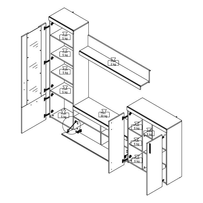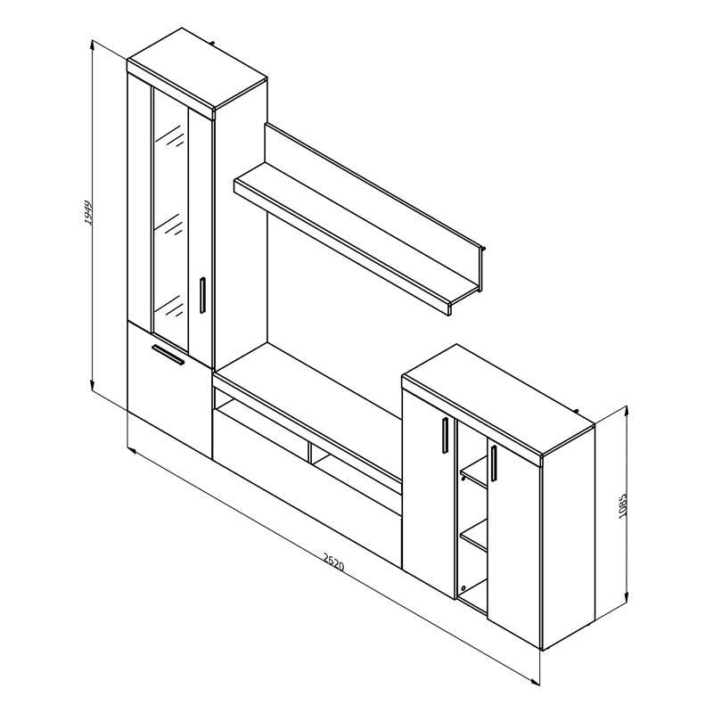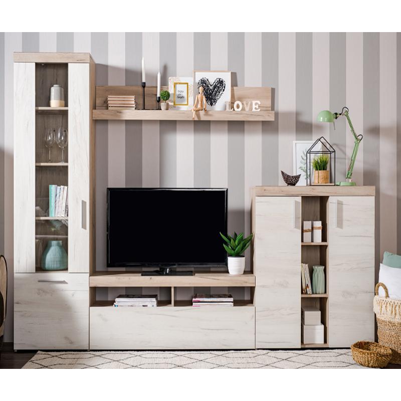 Η Σύνθεση Τηλεόρασης Arno αποτελεί μοναδική επιλογή για την ολοκλήρωση του σαλονιού σας, προσφέροντας ένα κομψό και λειτουργικό σημείο για την τοποθέτηση της τηλεόρασής σας. Στο κεντρικό της τμήμα μπορείτε να τοποθετήσετε την τηλεόραση, ενώ στους διπλανούς χώρους τα αγαπημένα σας διακοσμητικά θα βρουν τη θέση τους. Τα πρακτικά ράφια και τα ευρύχωρα ντουλάπια επιτρέπουν την αποθήκευση βιβλίων, κεραμικών σκευών ή άλλων αντικειμένων, προσφέροντας αρμονία και οργάνωση στον χώρο. Επιλέγοντας τη σύνθεση Arno, δημιουργείτε έναν χώρο που αποπνέει ηρεμία και κομψότητα, με κυρίαρχο χρώμα το λευκό.