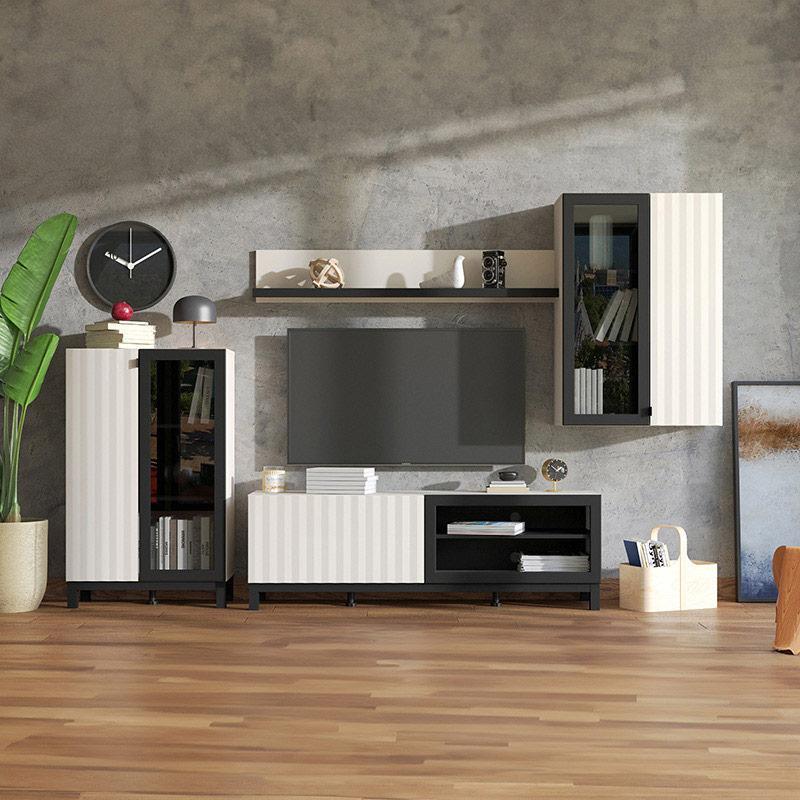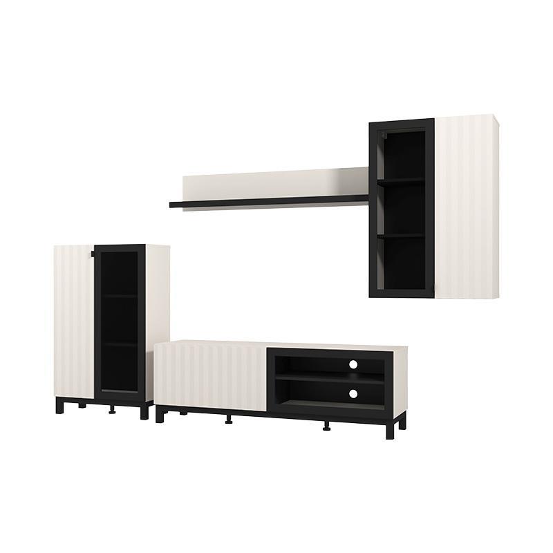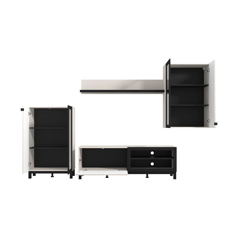 Αποτελείται από τρία διακριτά τμήματα, τα οποία μπορούν να ταξινομηθούν με ευελιξία στον χώρο σας, επιτρέποντας να προσαρμόσετε τη διαρρύθμιση σύμφωνα με τις ανάγκες και το στυλ σας. Με κλειστούς αποθηκευτικούς χώρους και ανοιχτά ράφια, παρέχει χώρο για βιβλία, διακοσμητικά ή ηλεκτρονικές συσκευές, ενώ μπορείτε να αναδείξετε τη σύνθεση με πίνακες, έργα τέχνης ή μοντέρνα φωτιστικά, προσθέτοντας χρώμα και προσωπικότητα στο καθιστικό σας.