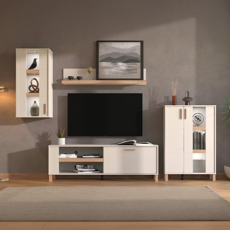 Αν επιθυμείτε να δώσετε στο σαλόνι σας έναν αέρα διαχρονικής κομψότητας με πρακτικότητα και εργονομία, το σύνθετο σαλονιού SHEFFIELD είναι η ιδανική επιλογή. Ο εκλεπτυσμένος συνδυασμός των αποχρώσεων Cashmere και Artisan Oak προσφέρει μια μοντέρνα και φιλόξενη αισθητική, που μπορεί εύκολα να συνδυαστεί με διάφορα διακοσμητικά στυλ.