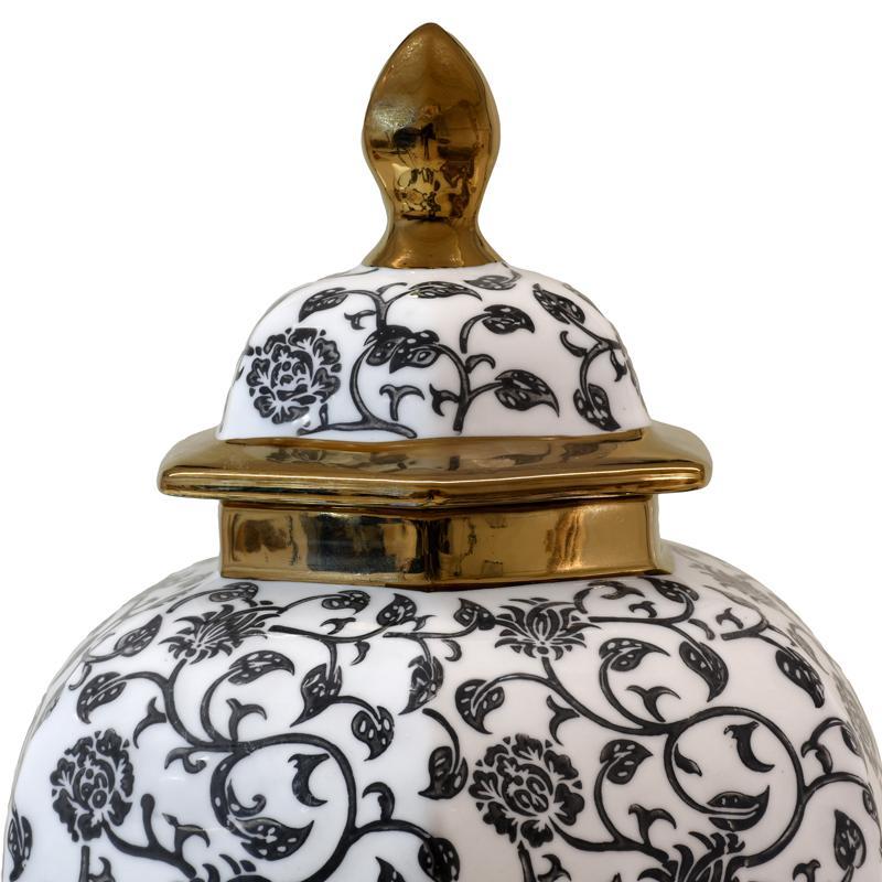 Δώστε έναν αέρα πολυτέλειας και σύγχρονης αισθητικής στον χώρο σας με αυτό το κεραμικό βάζο FL22424 σε μαύρες, λευκές και χρυσές αποχρώσεις. Ο εντυπωσιακός συνδυασμός των χρωμάτων το καθιστά ένα διακοσμητικό statement κομμάτι, που τραβάει το βλέμμα και αναβαθμίζει κάθε δωμάτιο.