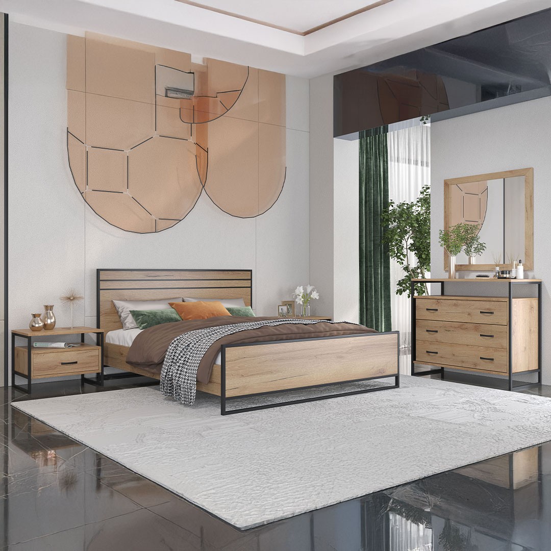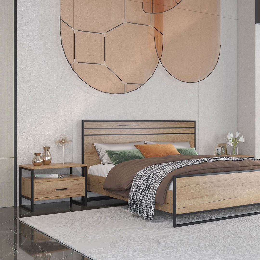 Τα μαύρα μεταλλικά χερούλια προσθέτουν μια μοντέρνα πινελιά στο design, ενώ οι μεταλλικοί οδηγοί συρταριών εξασφαλίζουν ομαλό και αθόρυβο άνοιγμα, προσφέροντας άνεση και αξιοπιστία στην καθημερινή χρήση, έτσι το κομοδίνο ALEXIA είναι η ιδανική επιλογή για όσους αναζητούν πρακτικότητα, ποιότητα και αισθητική αρμονία στο υπνοδωμάτιό τους.