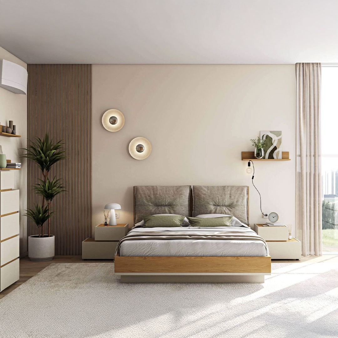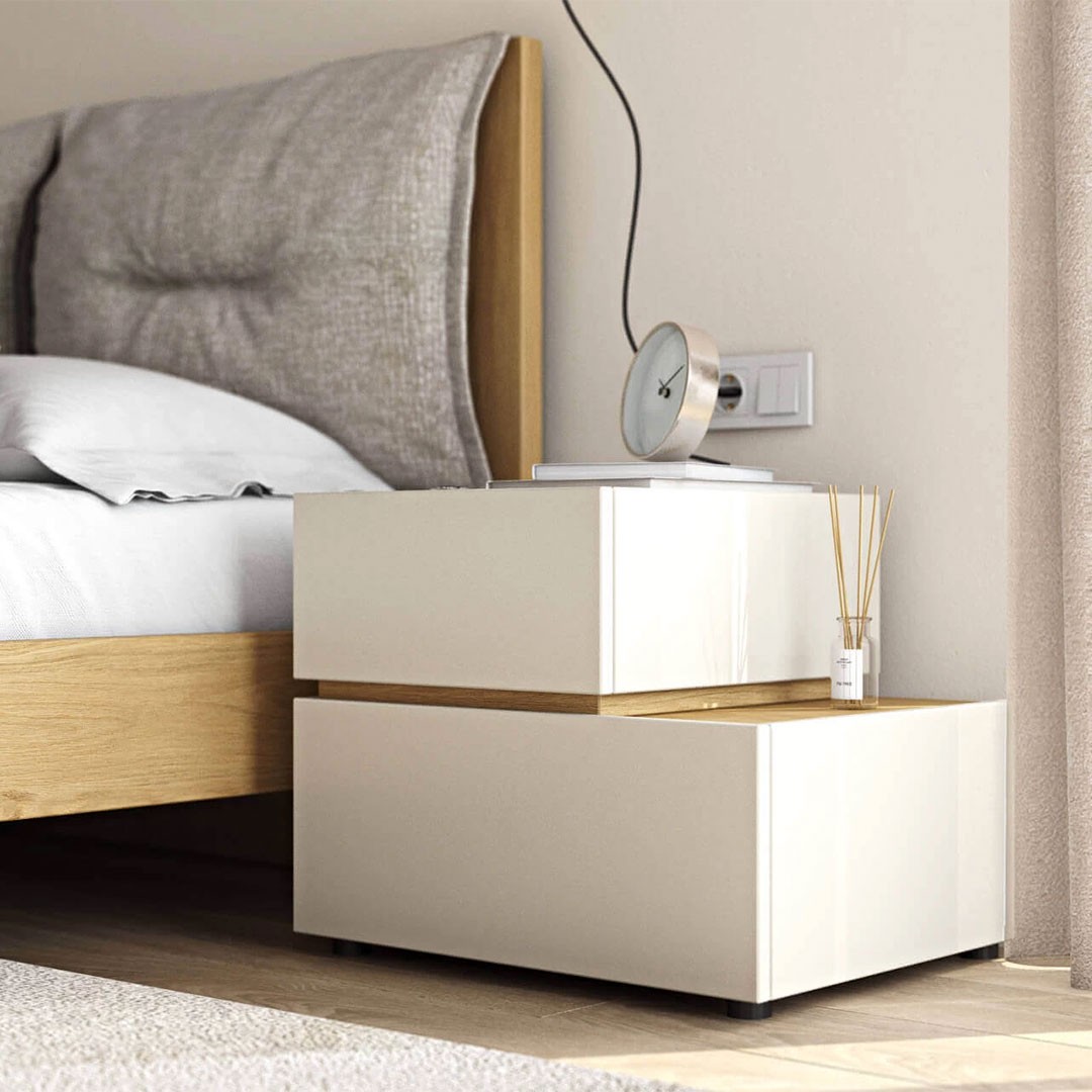 Η φωτεινή αισθητική και ο φυσικός χαρακτήρας συναντώνται στο κομοδίνο LOFT, μια κομψή και λειτουργική επιλογή για σύγχρονα υπνοδωμάτια. Κατασκευασμένο από τεχνητό καπλαμά σε υπόλευκο – εκρού χρώμα, συνδυάζεται αρμονικά με την επιφάνεια σε light oak – φυσικό δρύς χρώμα που υπάρχει στο επάνω μέρος και περιμετρικά του επίπλου, δημιουργώντας ένα ισορροπημένο και διαχρονικό αποτέλεσμα.