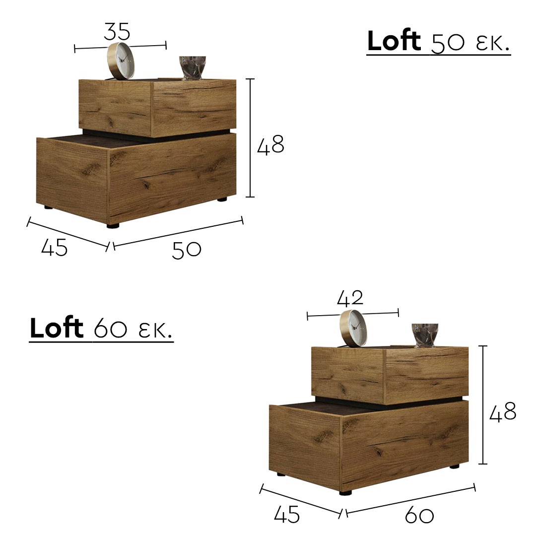 Κομοδίνο LOFT σε Εκρού – Δρύς 60x45x48εκ.