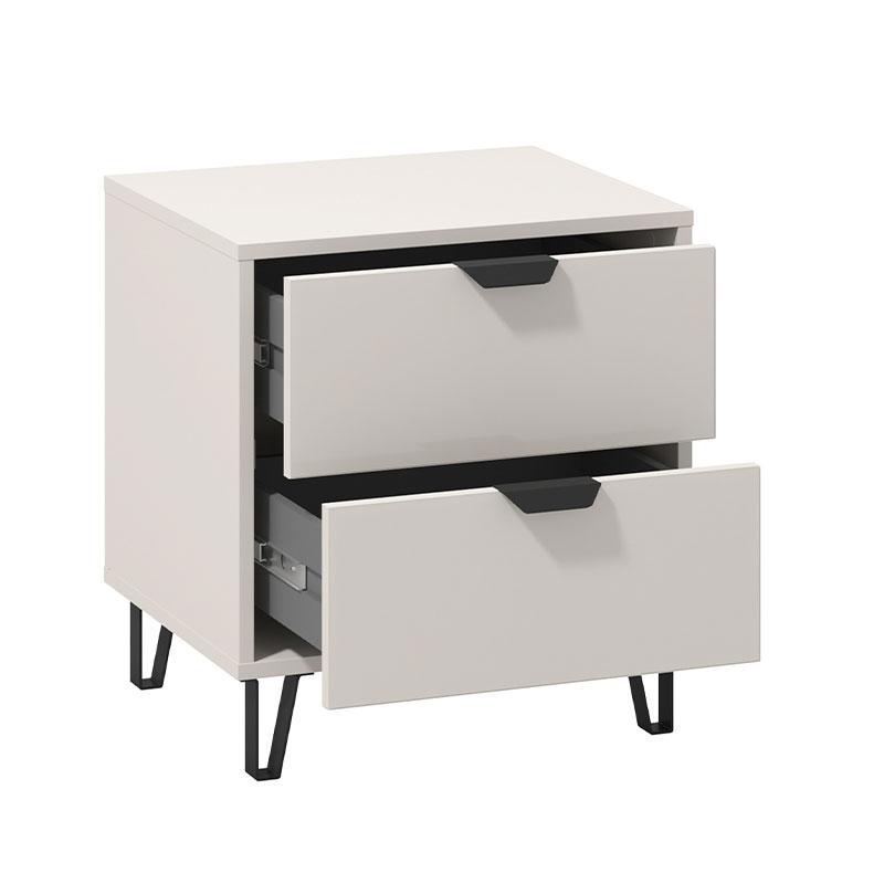 Το κομοδίνο διαθέτει δύο ευρύχωρα συρτάρια, παρέχοντας άφθονο χώρο για την αποθήκευση προσωπικών αντικειμένων, βιβλίων ή αξεσουάρ, διατηρώντας το υπνοδωμάτιό σας οργανωμένο. Ο συμπαγής σχεδιασμός του επιτρέπει την τοποθέτησή του ακόμη και σε μικρότερους χώρους, καθιστώντας το ιδανικό για κάθε τύπο υπνοδωματίου. Δημιουργήστε μια αίσθηση ισορροπίας στην κρεβατοκάμαρα τοποθετώντας δυο κομοδίνα, ή τοποθετήστε μόνο ένα αν υπάρχει έλλειψη χώρου.