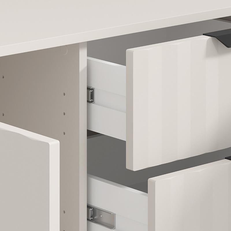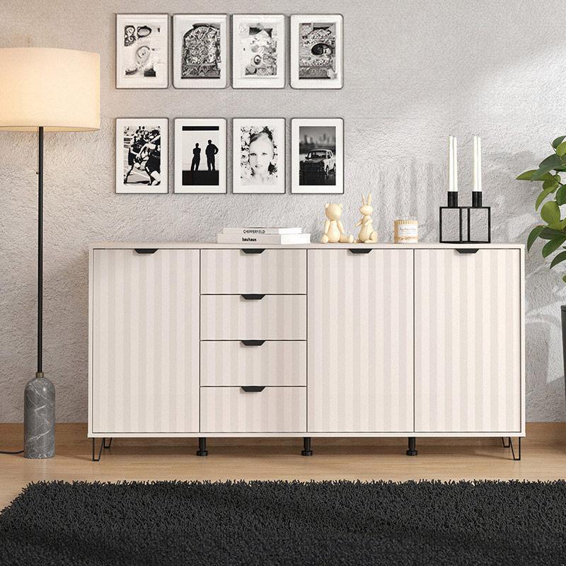 Αυτή η κομότα-μπουφές διαθέτει τέσσερα ευρύχωρα συρτάρια και τέσσερα ντουλάπια, προσφέροντας ακόμα μεγαλύτερη ευχέρεια στην οργάνωση του χώρου σας. Το Cashmere ματ χρώμα και η μεταλλική μαύρη χειρολαβή δίνουν μια μοντέρνα αίσθηση, ενώ η απλότητα του σχεδιασμού της επιτρέπει να συνδυάζεται αρμονικά με κάθε τύπο διακόσμησης.