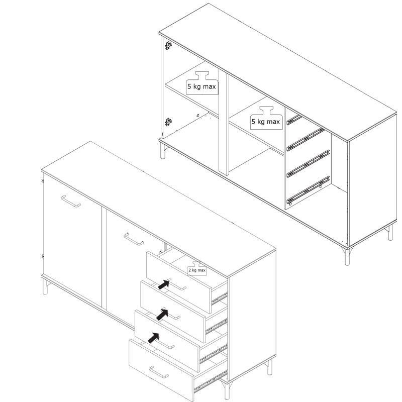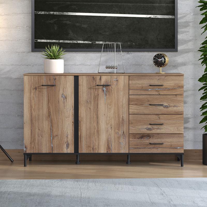 Με τέσσερα συρτάρια και τρία κλειστά τμήματα για αποθήκευση, η κομότα Corsica σάς επιτρέπει να οργανώσετε εύκολα τα αρχεία σας, τα προσωπικά σας αντικείμενα ή τα αξεσουάρ που θέλετε να έχετε άμεση πρόσβαση, ενώ ταυτόχρονα προσφέρει έναν υπέροχο τρόπο να διακοσμήσετε το χώρο σας.