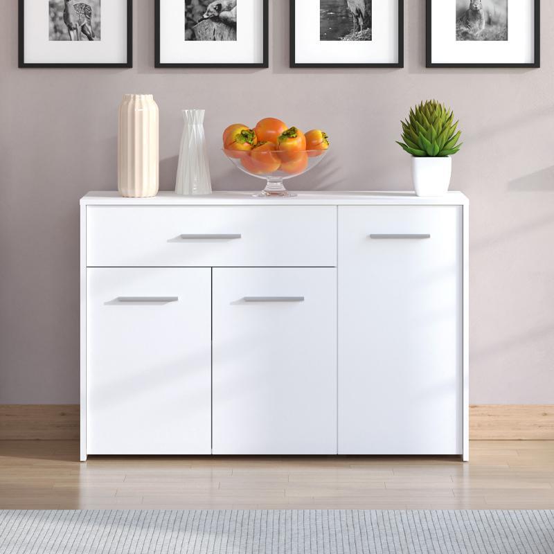 Η κομψή και διακριτική λευκή απόχρωση του Garona δημιουργεί μια ζεστή ατμόσφαιρα στον χώρο σας και προσφέρει έναν ιδανικό συνδυασμό αρμονίας και πρακτικότητας. Διαθέτει τρία ευρύχωρα ντουλάπια με ράφια στο εσωτερικό τους και ένα κεντρικό συρτάρι για να εξασφαλίσετε την άνεση και την ευχρηστία που χρειάζεστε.