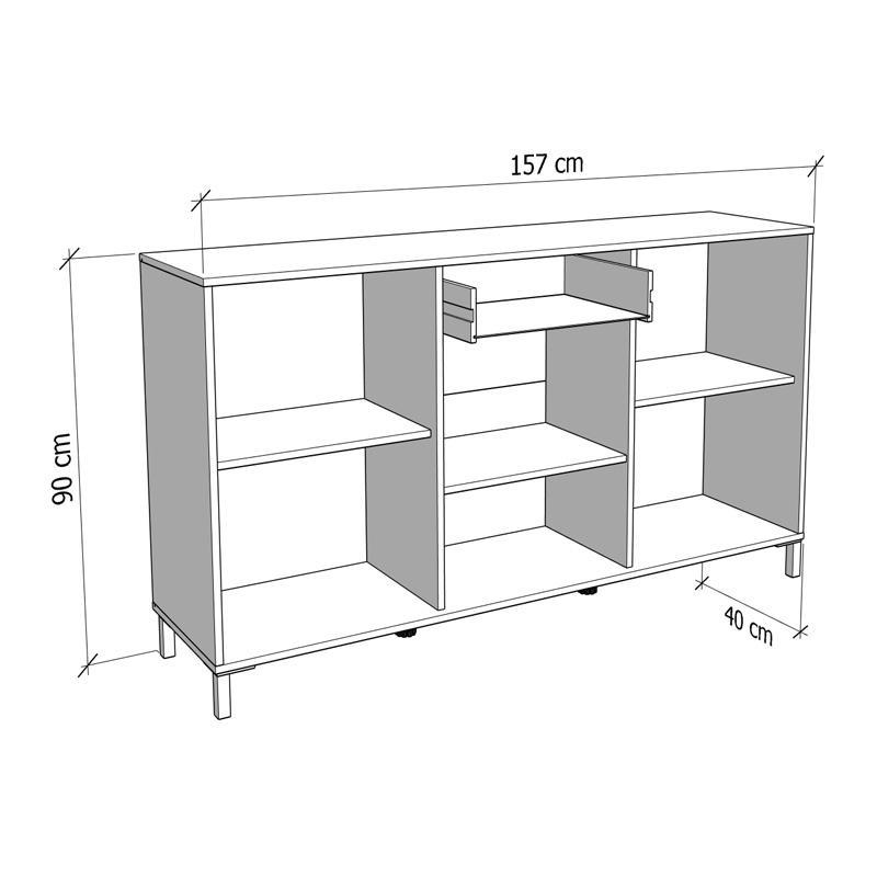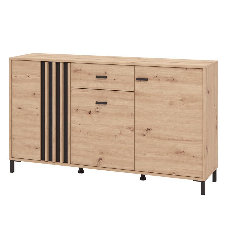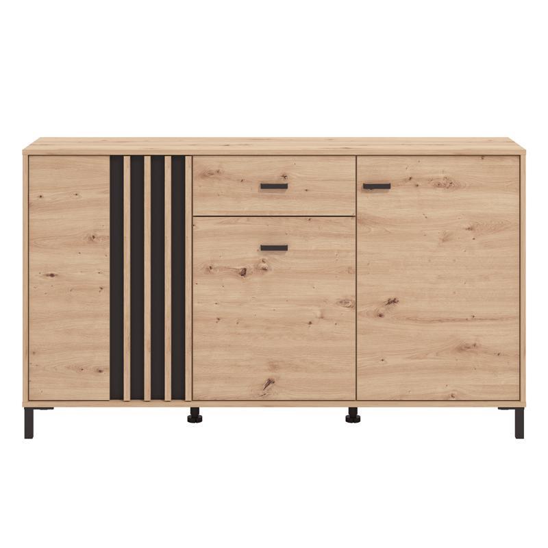 Η επιφάνειά του σε απόχρωση Artisan Oak αποπνέει αίσθηση φυσικότητας και ζεστασιάς, ενώ οι μαύρες λεπτομέρειες προσθέτουν μοντέρνα αντίθεση και στιλ. Διαθέτει τρία ντουλάπια και ένα ευρύχωρο συρτάρι, παρέχοντας άφθονο αποθηκευτικό χώρο για σερβίτσια, λευκά είδη ή διακοσμητικά είδη, διατηρώντας τον χώρο σας οργανωμένο και τακτοποιημένο.