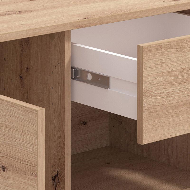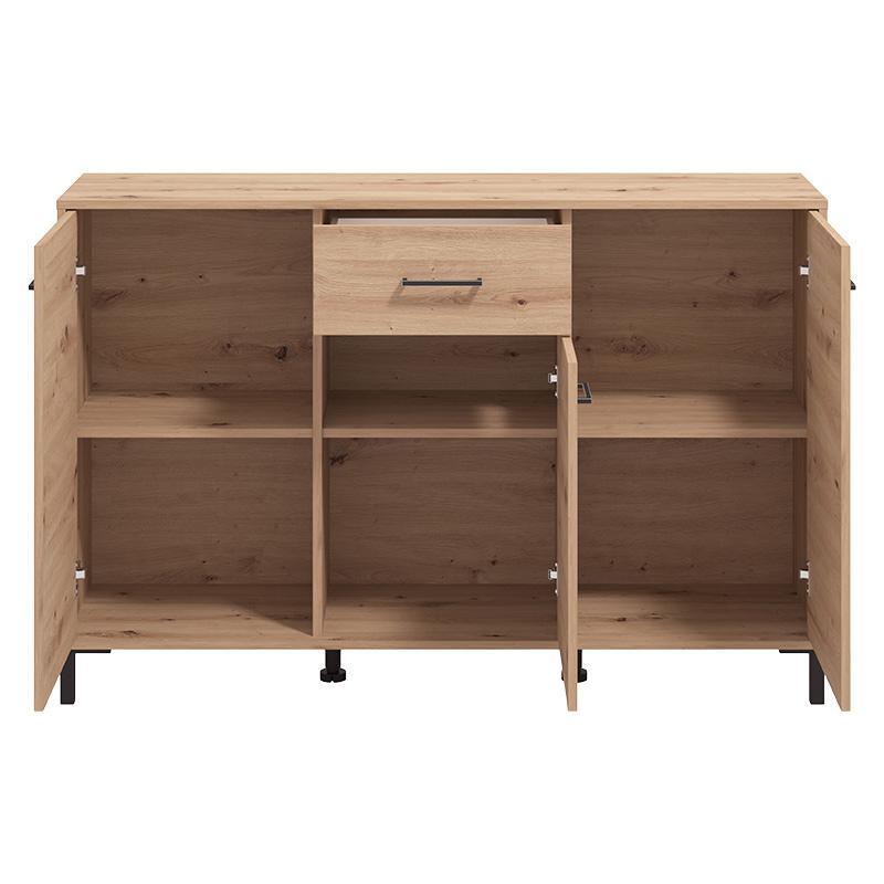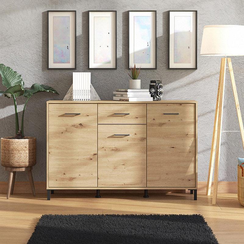 Η κομότα Vienne διαθέτει τρία (3) ντουλάπια και ένα (1) συρτάρι, προσφέροντας άπλετο χώρο για αποθήκευση. Χάρη στο πρακτικό μέγεθος και την απλή γραμμή της, είναι εύκολο να συνδυαστεί με διάφορα στυλ διακόσμησης και να προσφέρει μια τακτοποιημένη και κομψή λύση για τον χώρο σας.