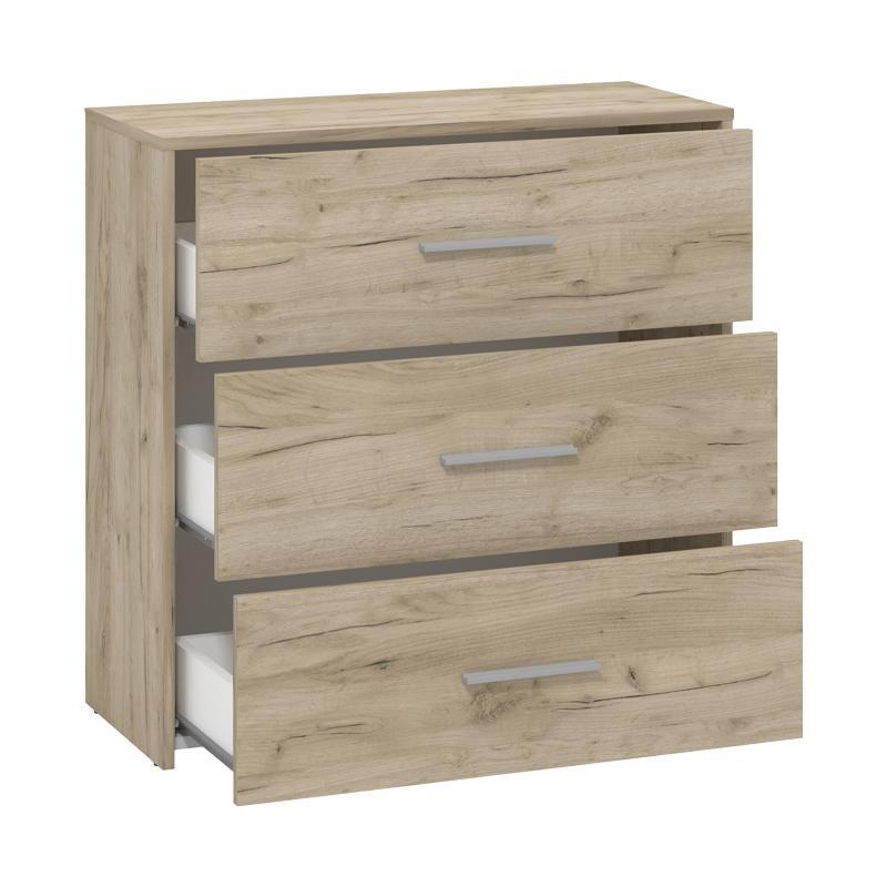 Με τρία μεγάλα συρτάρια, η συρταριέρα υπνοδωματίου Garona, σας επιτρέπει να αποθηκεύσετε τα προσωπικά σας αντικείμενα, όπως ρούχα, εσώρουχα, αξεσουάρ ή ακόμη και έγγραφα, κρατώντας τα οργανωμένα και εύκολα προσβάσιμα.