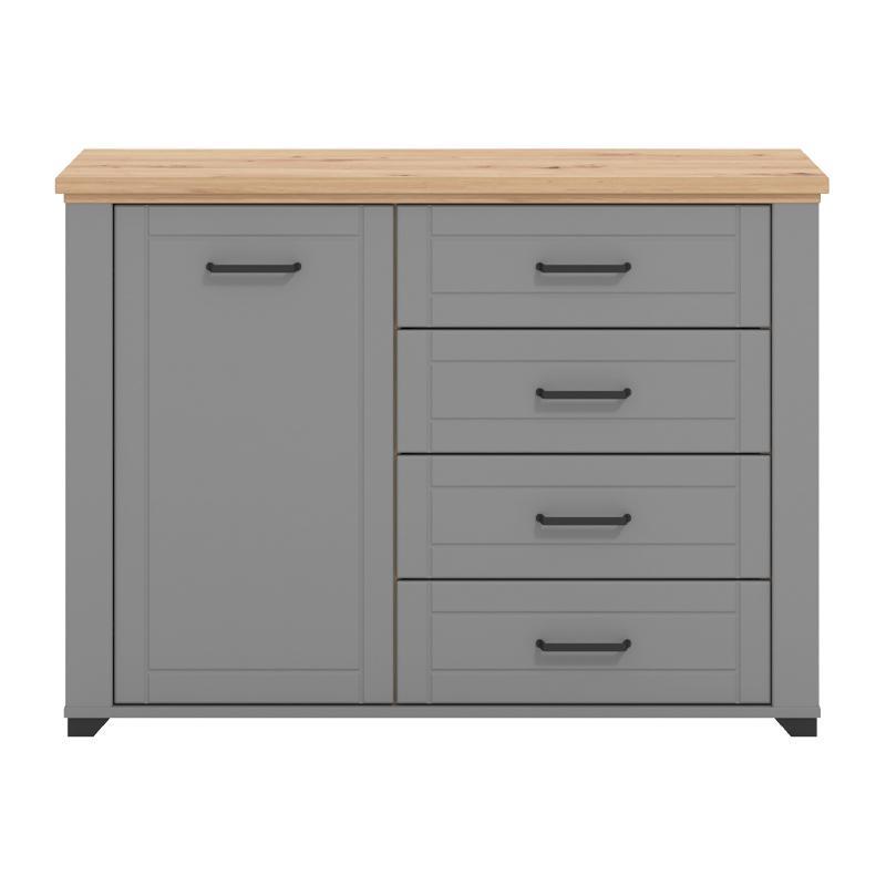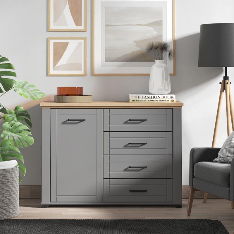 Η κομότα Valencia της ομώνυμης συλλογής είναι η ιδανική προσθήκη για κάθε σύγχρονο χώρο. Εργονομικά σχεδιασμένη, συνδυάζει πρακτικότητα και στυλ, και μπορεί να τοποθετηθεί σε οποιονδήποτε χώρο του σπιτιού, όπως το υπνοδωμάτιο, το σαλόνι ή τον διάδρομο. Ο σχεδιασμός της με γκρι του γραφίτη και artisan oak χρώματα, σε συνδυασμό με την γκρι μελαμίνη και την επίστρωση ματ επιφάνειας σε MDF, δημιουργεί μια ζεστή και κομψή ατμόσφαιρα, ιδανική για ένα ευχάριστο και διαχρονικό αποτέλεσμα.