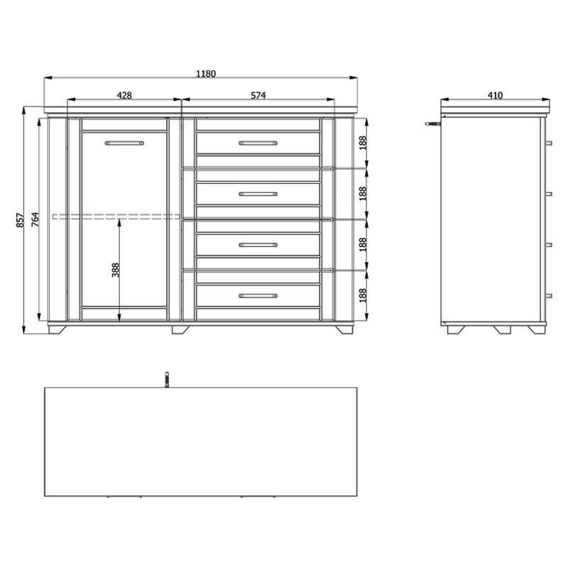 Πλάτος: 118, Βάθος: 41, Ύψος: 85.5 cm