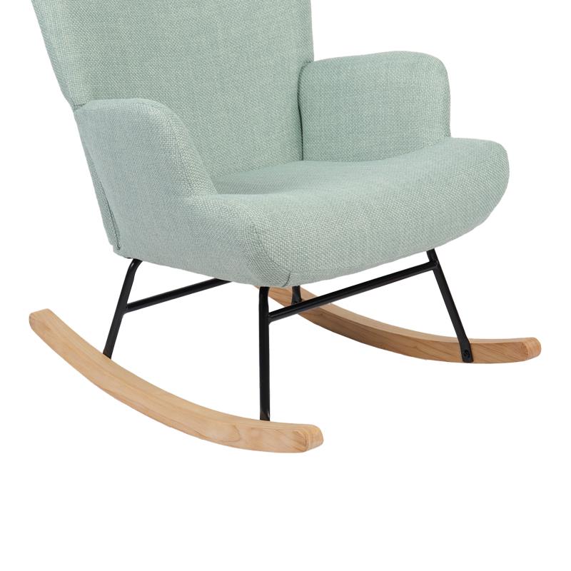 Κουνιστή πολυθρόνα Jianna μέντα ύφασμα με πόδι σε φυσική απόχρωση 79x64x89εκ
