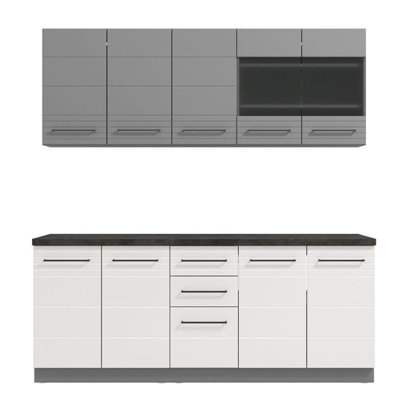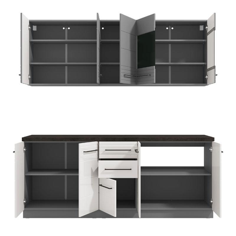 Έτοιμη Σύνθεση Κουζίνα Petra 200 Γκρί Γραφίτης - Λευκό Γυαλιστερό 200x56x214 εκ.