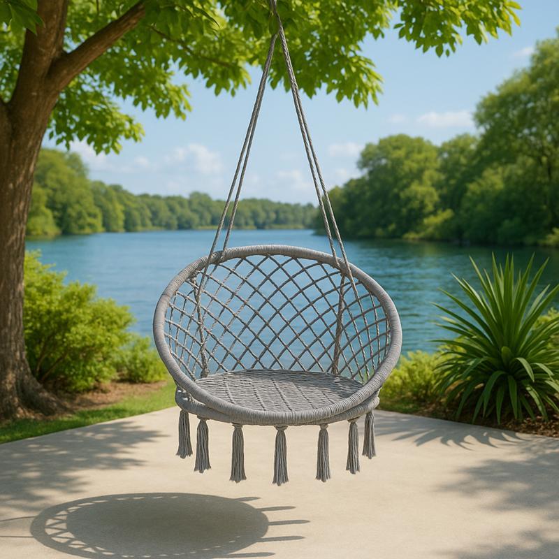 Η τέλεια λύση για απολαυστικές στιγμές χαλάρωσης για παιδιά αλλά και ενηλίκους αποτελεί η κρεμαστή μακραμέ κούνια - αιώρα .Η μακραμέ κούνια αποτελεί διακοσμητικό, τόσο για τον εξωτερικό, όσο και τον εσωτερικό σας χώρο. Είναι κατασκευασμένη από μαλακό βαμβάκι polycotton και μέταλλο, και το μέγιστο επιτρεπόμενο βάρος είναι στα 100kg. Είναι διαθέσιμη σε δύο αποχρώσεις που θα ταιριάξουν σίγουρα στο χώρο σας!