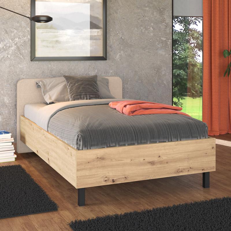 Κρεβάτι Barletta 120 Ημίδιπλο σε Artisan Oak με Μπέζ Ύφασμα 120×200 εκ.