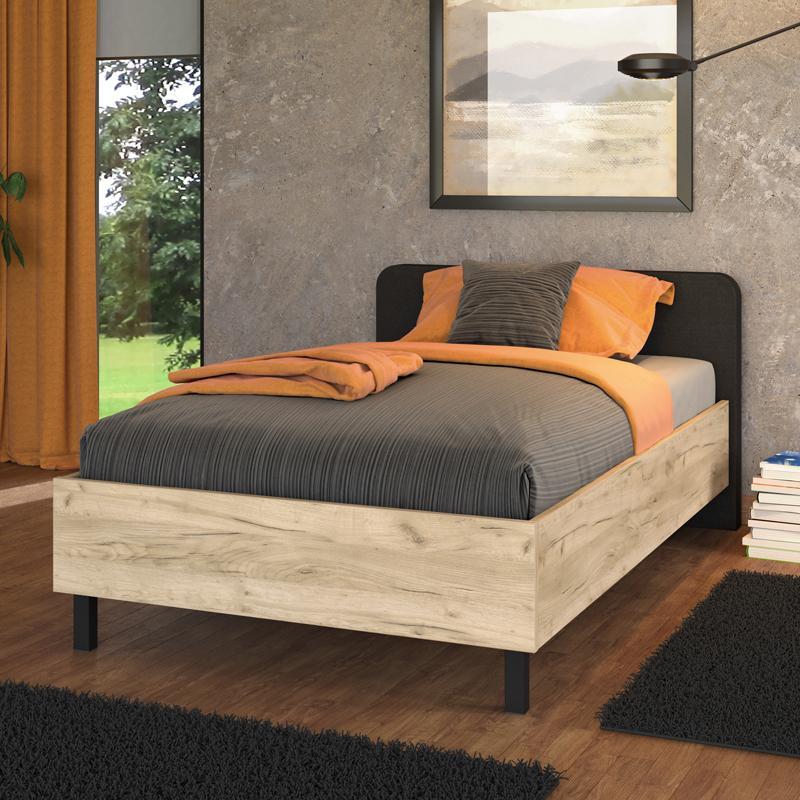 Κρεβάτι Barletta 120 Ημίδιπλο Γκρί Δρύς με Γκρί Ύφασμα & Μαύρα πόδια 120x200 εκ.