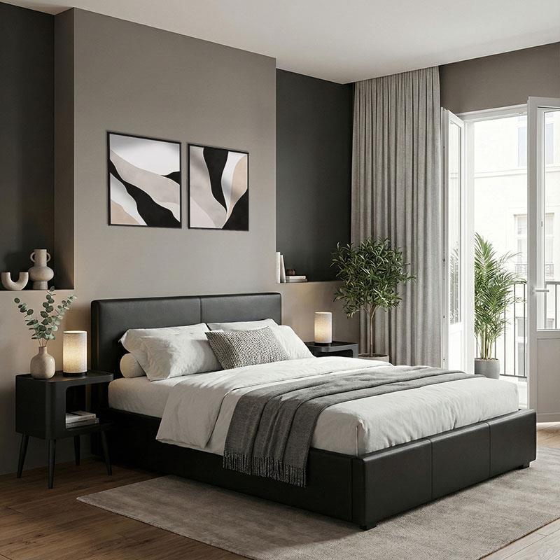 Αναβαθμίστε την αισθητική και τη λειτουργικότητα του υπνοδωματίου σας με το κομψό κρεβάτι Dellia, σχεδιασμένο για να προσφέρει μέγιστη άνεση και πρακτικότητα. Η στιβαρή κατασκευή του, ντυμένη με υψηλής ποιότητας δερματίνη, προσδίδει μια αίσθηση πολυτέλειας και φινέτσας που συμπληρώνει άψογα κάθε σύγχρονη διακόσμηση.