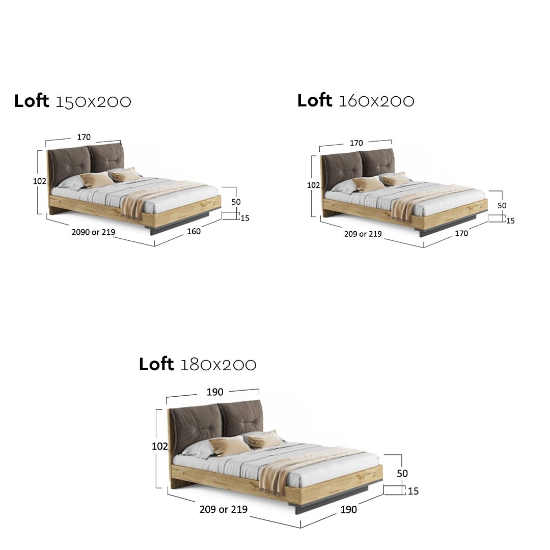 Το κρεβάτι LOFT 8 διατίθεται σε τρεις διαστάσεις, ανάλογα με το στρώμα σας, για να καλύψει πλήρως τις ανάγκες του χώρου σας. Μπορείτε να ολοκληρώσετε τη σύνθεση του υπνοδωματίου με τα κομοδίνα, τη συρταριέρα, τους καθρέπτες και τις ντουλάπες της σειράς υπνοδωματίου Loft, δημιουργώντας έτσι μια κομψή και σύγχρονη επιλογή τόσο για το υπνοδωμάτιο σας όσο και για το κατάλυμα - Airbnb σας και μπορείτε να τα βρείτε online μέσω του eshop του CenterHome, ή να τα ανακαλύψετε από κοντά σε ένα από τα καταστήματά μας σε Θεσσαλονίκη και Χαλκιδική.