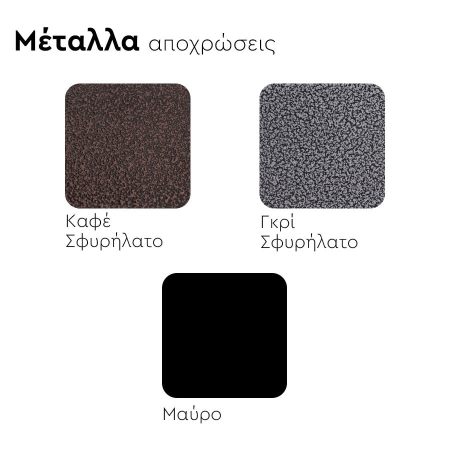 3 αποχρώσεις: Καφέ Σφυρήλατο, Γκρί Σφυρήλατο, Μαύρο.