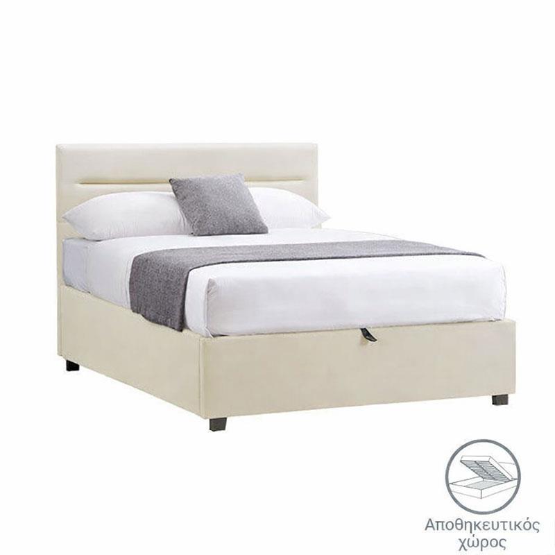 Επενδυμένο Κρεβάτι Molito Ημίδιπλο με Αποθηκευτικό χώρο Βελούδο Εκρού 120x200εκ.