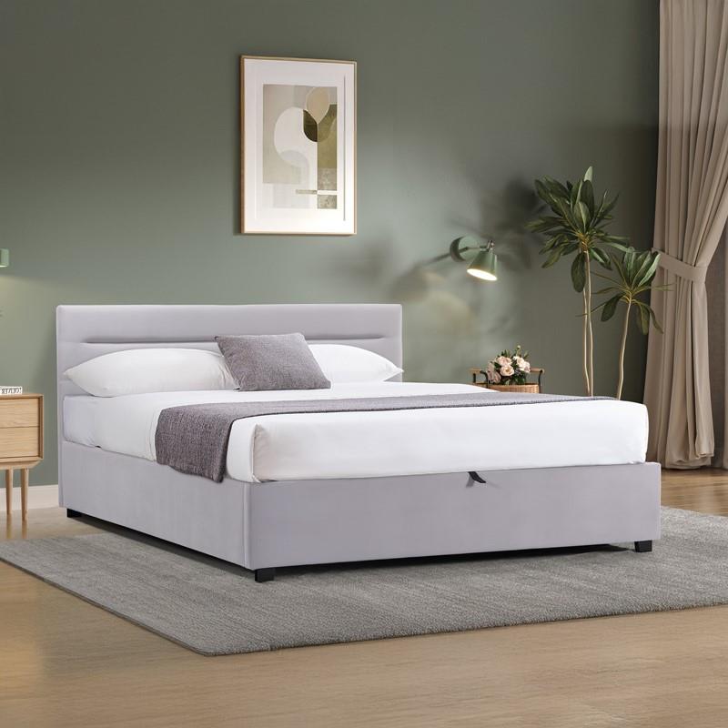 Κρεβάτι Molito βελούδο σε γκρι απόχρωση με αποθηκευτικό χώρο160×200εκ