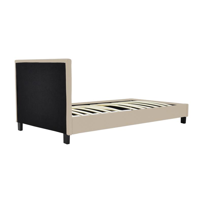 Επενδυμένο κρεβάτι Nevil Μονό ύφασμα εκρού με ξύλινο μαύρο πόδι 90×190εκ