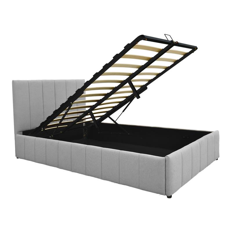 Το κρεβάτι διαθέτει έναν εύχρηστο μηχανισμό ανύψωσης του στρώματος, ο οποίος αποκαλύπτει έναν ευρύχωρο αποθηκευτικό χώρο από κάτω. Αυτό καθιστά εξαιρετικά εύκολη την τακτοποίηση κλινοσκεπασμάτων, μαξιλαριών, ρούχων εκτός εποχής ή άλλων αντικειμένων, συμβάλλοντας αποτελεσματικά στην οργάνωση και την τάξη του χώρου.